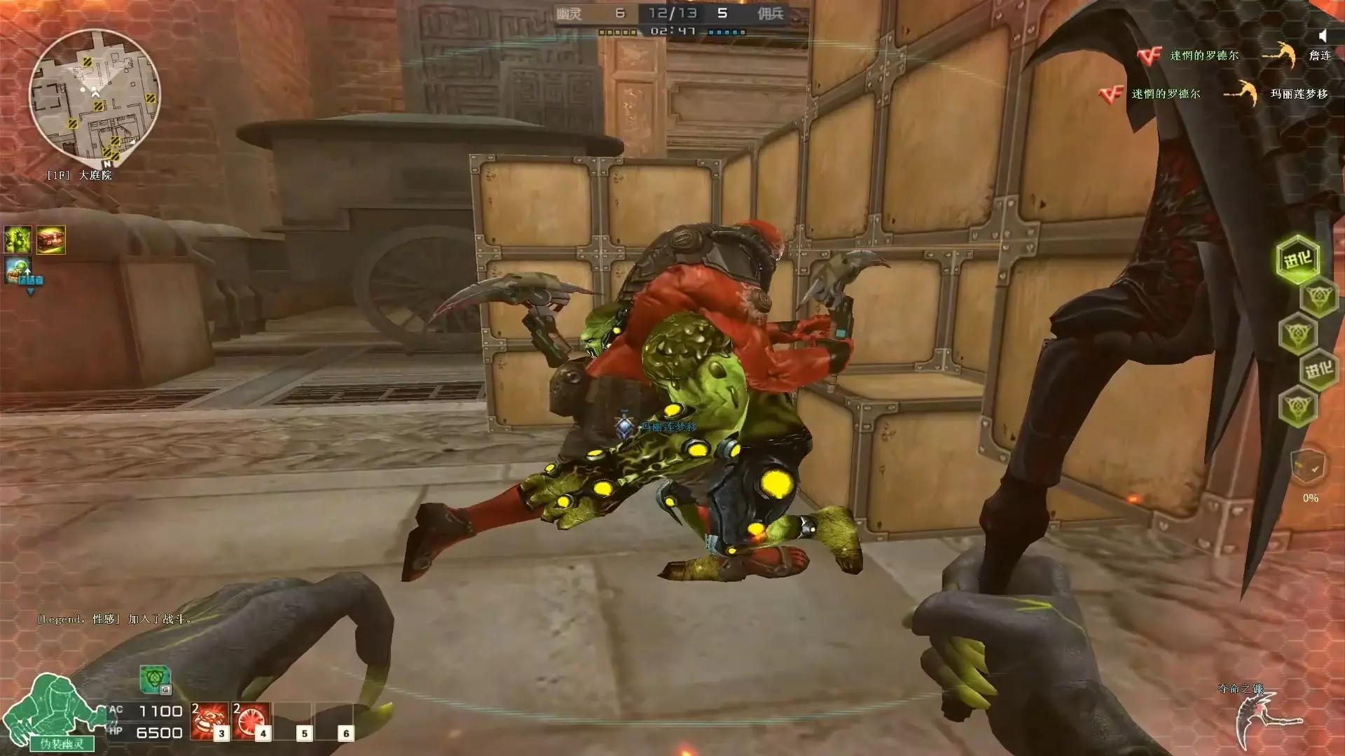 这是一组穿越火线游戏的对战画面,展示了生化模式中佣兵与幽灵的对战场景,能看到救赎猎手、地狱终结者等角色,还有玩家的击杀数据、武器使用等对战内容。
