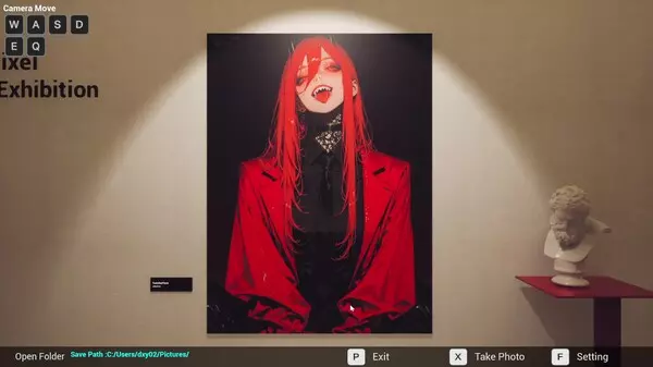 这是Mautix与RyuPixel合作的沉浸式画廊展示,可通过WASD等按键移动视角,还能对展示的二次元风格画作进行拍照,可调节相机参数、选择滤镜,打造不同的拍摄效果。