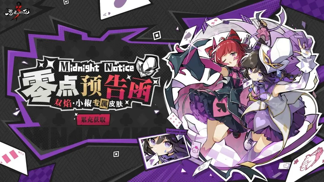 双焰·小椒穿戴「零点预告函」,即可体验皮肤特效「卡牌游戏」。