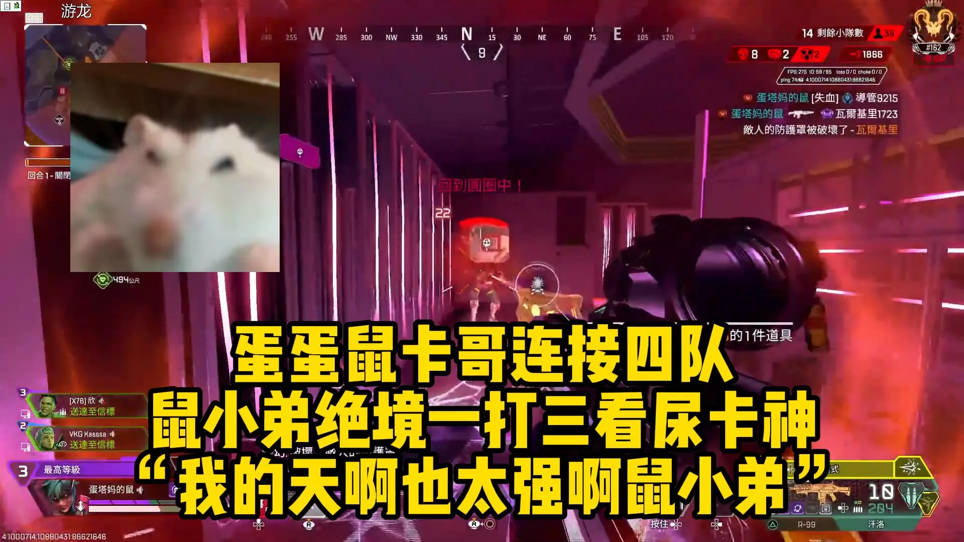 这是《Apex英雄》的游戏直播内容,龙哥在游戏过程中,让三明治帮忙弄一个直播号,想要对自己在游戏里的精彩操作进行切片,同时画面呈现了游戏内战斗、拾取物资等过程。