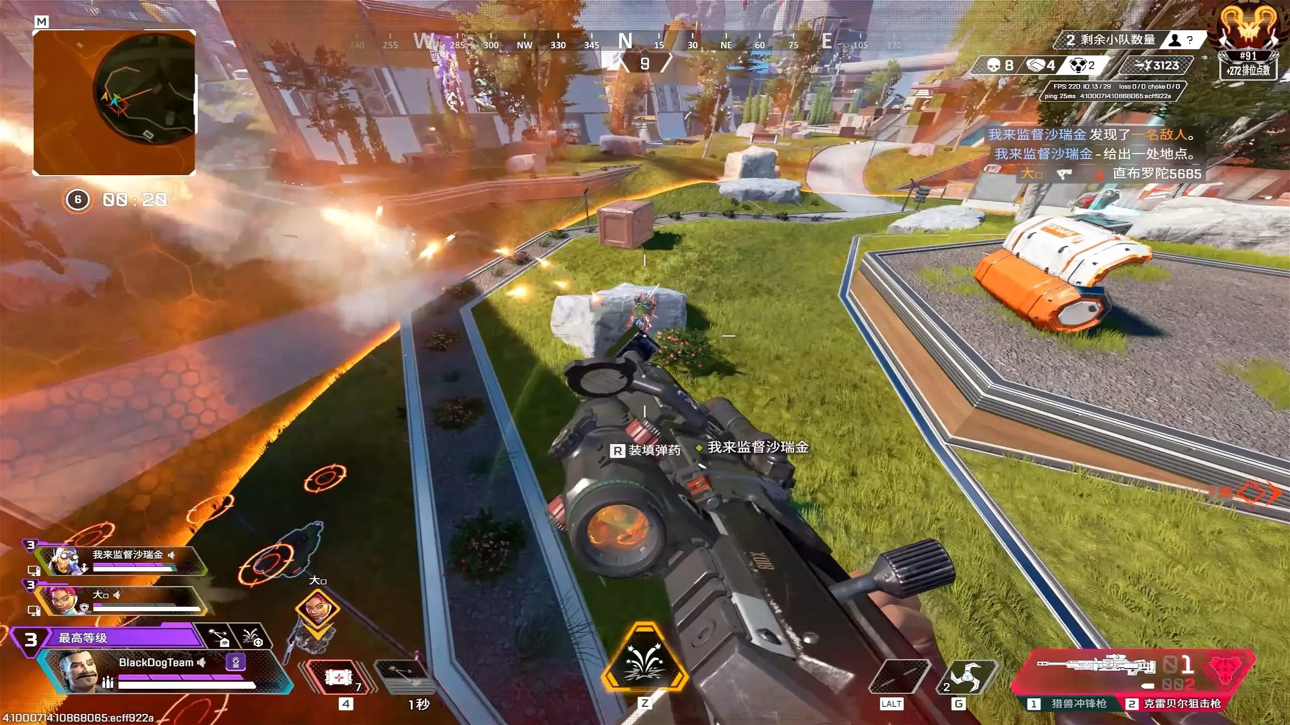 这是《Apex英雄》的游戏对战画面,展示了玩家在战斗中使用技能掩护并复活队友,完成复活后获得奖励,随后继续投入战斗的惊险过程,呈现了游戏里的团队作战场景。