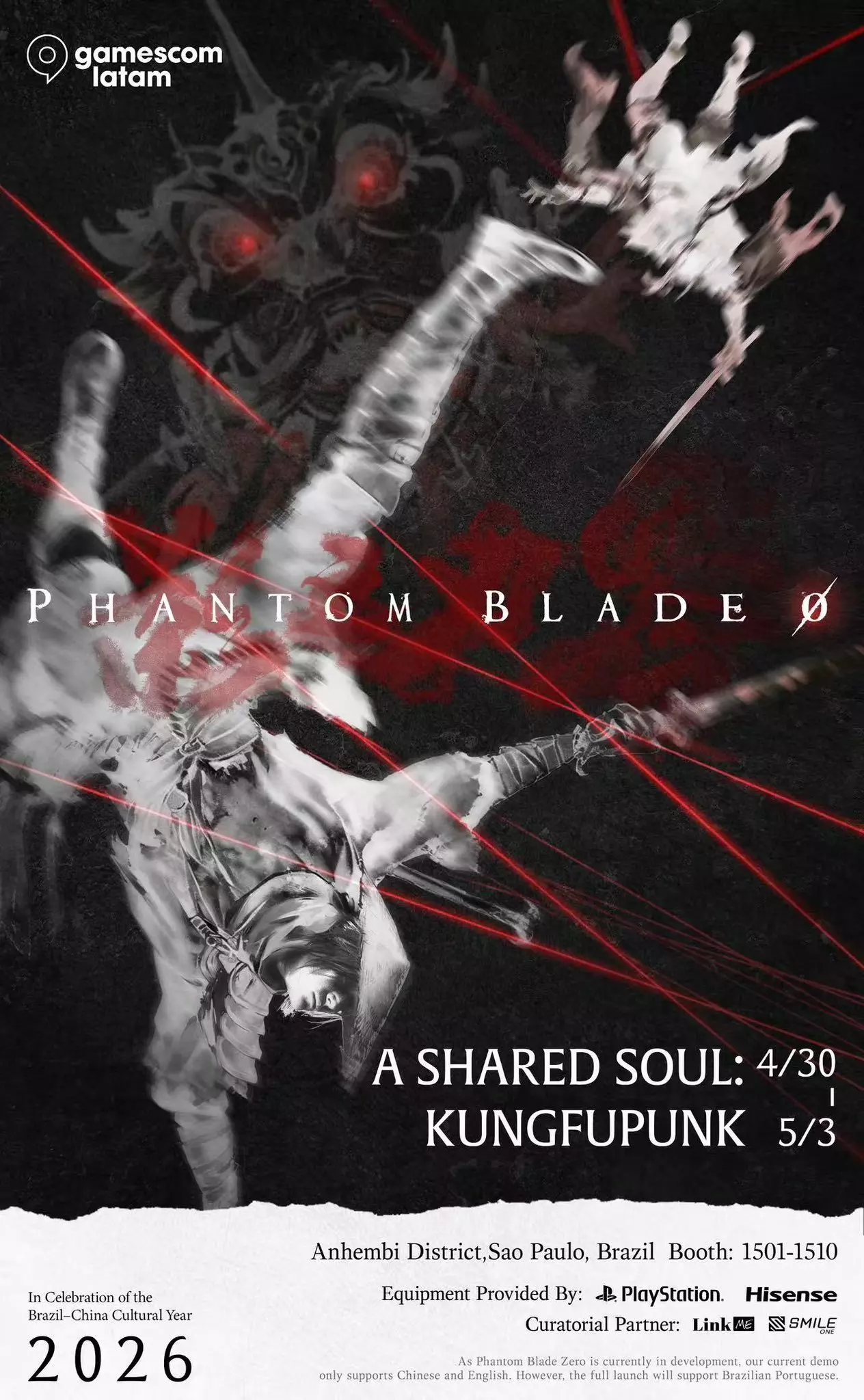 今日,《影之刃零》官方宣布将参加【Gamescom Latam 拉美国际游戏展 2026】。 "庆祝中巴文化年 2026" 时间:2026年4月30日-2026年5月3日 地点:巴西 圣保罗 安年比会展中心 展位号 1501-1510 提供线下试玩(demo还是之前的,没有新内容) 《影之刃零》: 正值中巴文化年之际,《影之刃零》受邀参加在巴西圣保罗举办的Gamescom LATAM 2026游戏展。 我们将携去年已公开的线下DEMO及功夫朋克艺术首次踏足南美洲大地,亲身感受和见证当地玩家的热情!