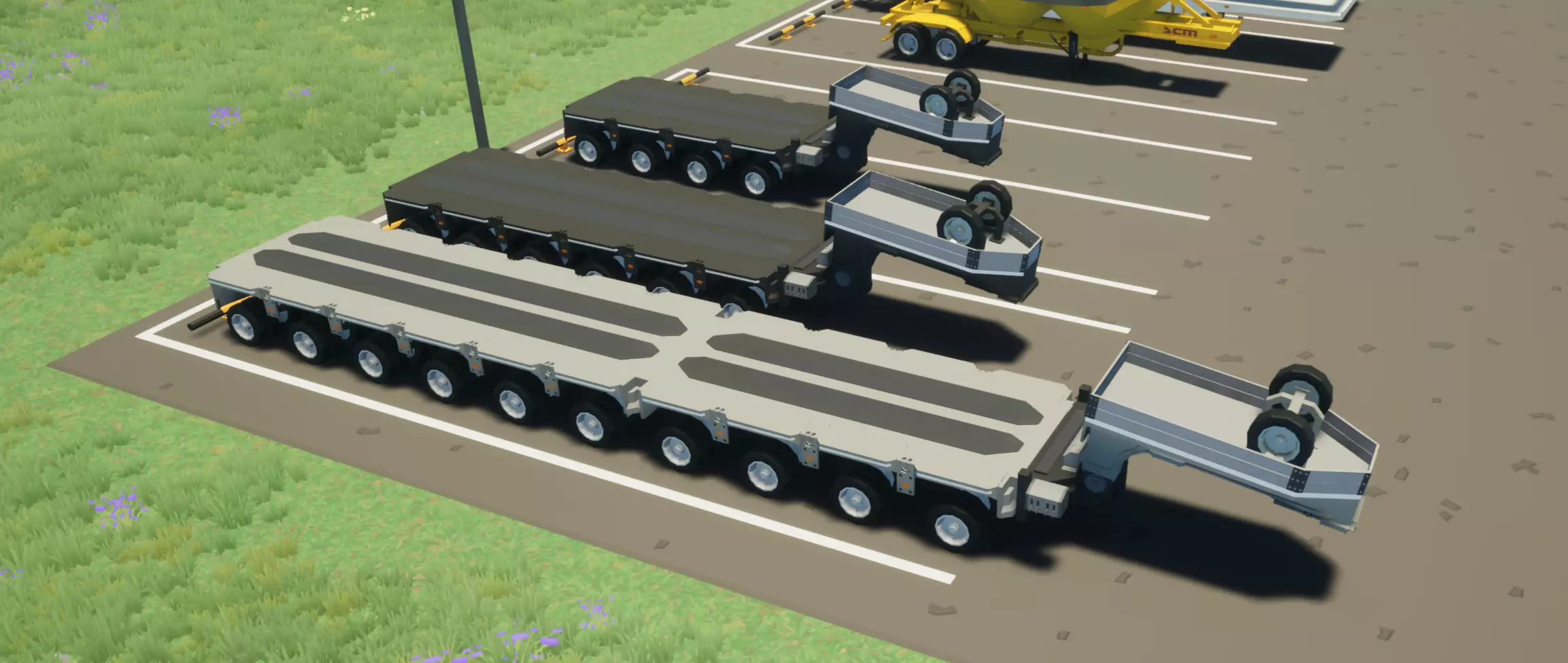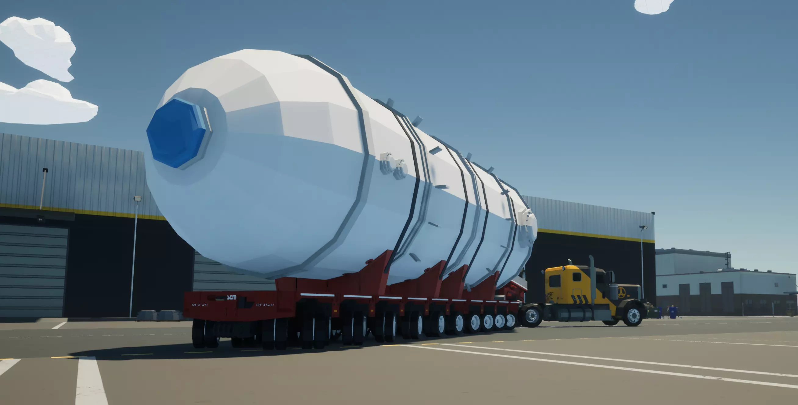 【歌利亚】 新增了三款多轴拖车,分别是歌利亚-4、歌利亚-6和歌利亚-10,用于超大型货物运输。 你可以在拖车生成点生成它们。 现在你可以从经销商处购买歌利亚。 新增了歌利亚后保险杠。 坦克工厂新增了歌利亚生成点。