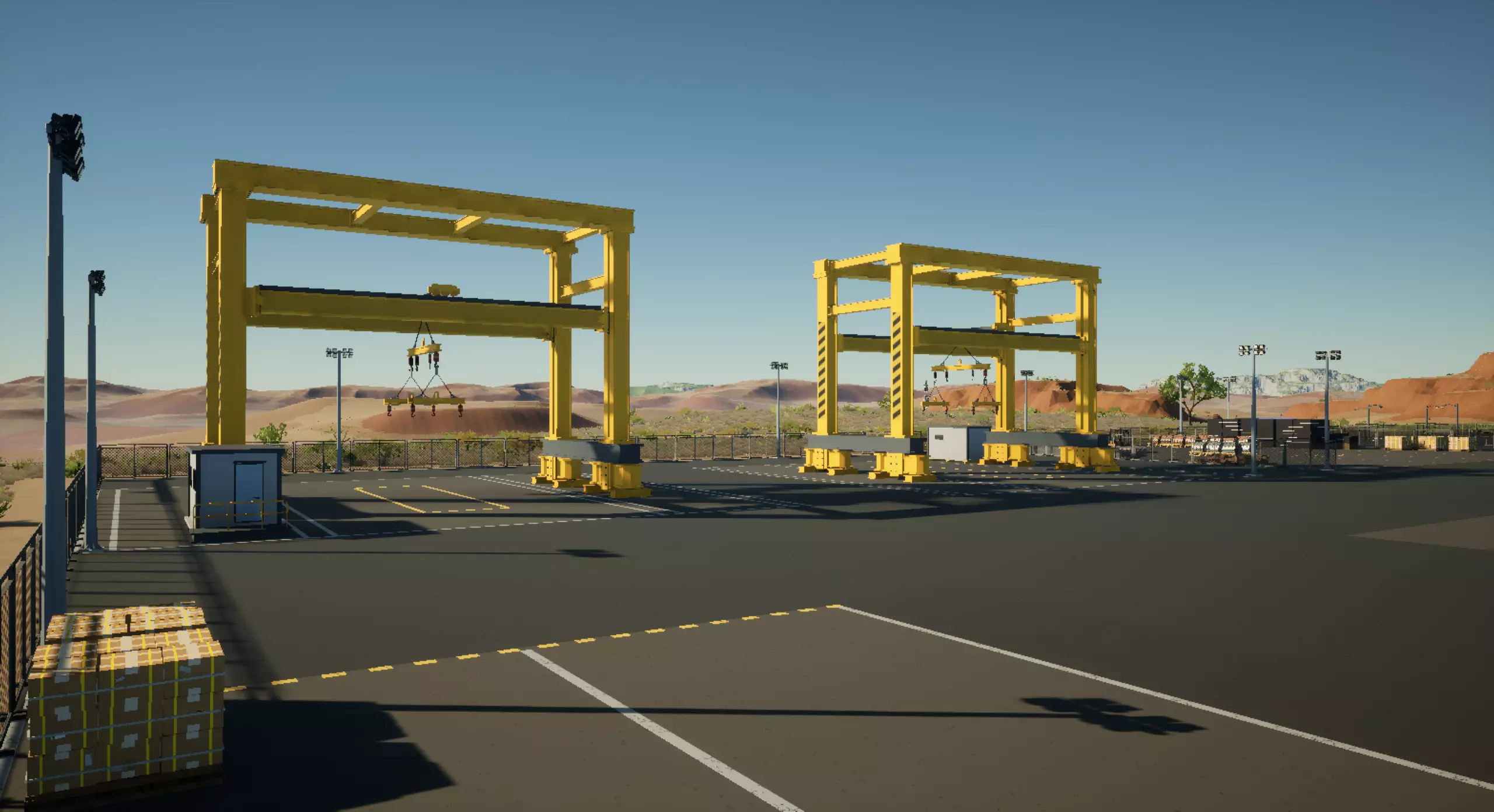 佐渡变压器工厂 在王子钻井附近新增了变压器工厂。 这些货物非常沉重,在运输过程中会触发护送任务。 使用全新的歌利亚拖车来运输变压器。 请注意,你需要精确对齐拖车才能正确装载变压器。