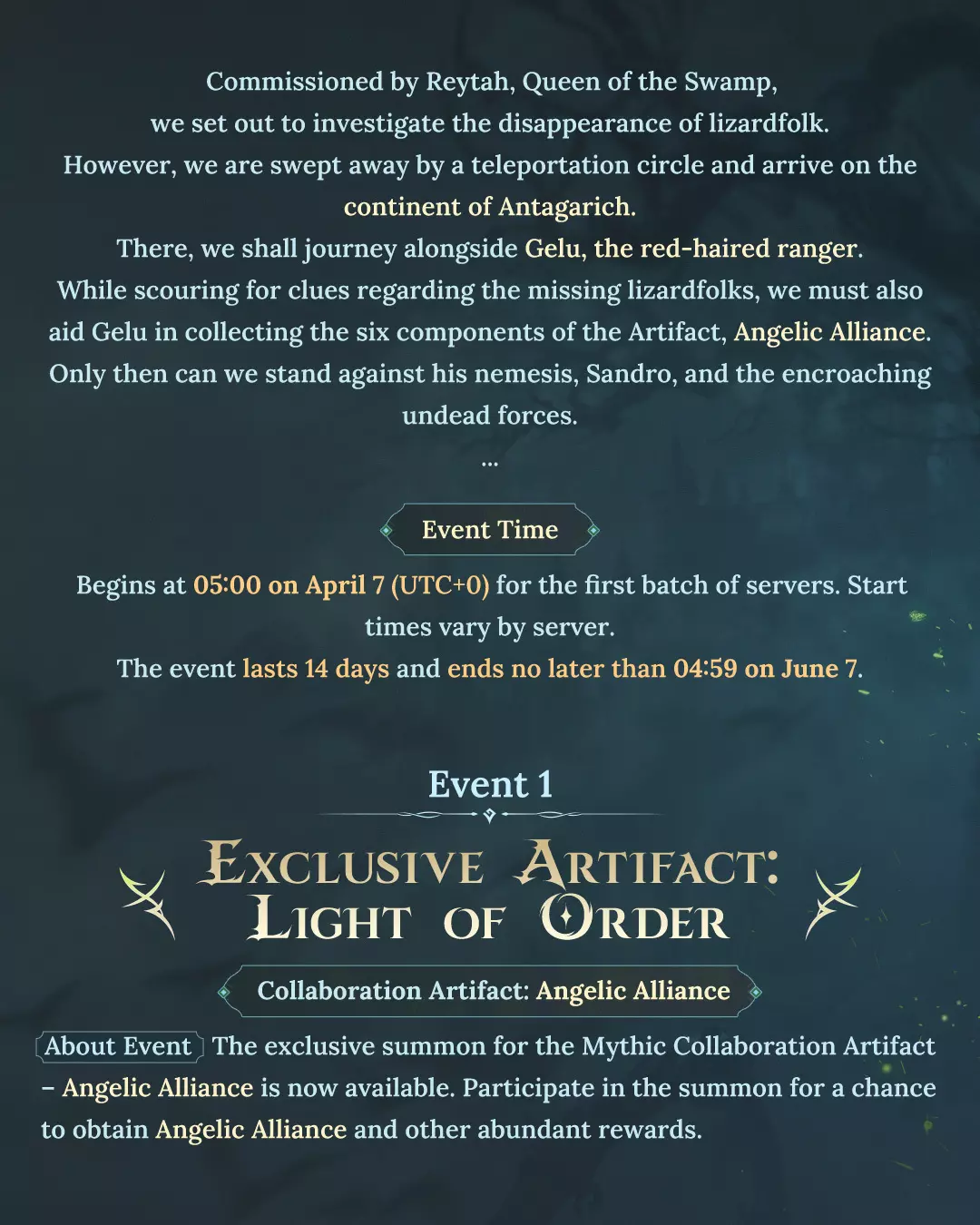 旅行者们,一个神秘的传送阵已开启通往安塔利亚的道路。与格鲁并肩作战,集结天使联盟,共同对抗桑德罗崛起的不死军团,这场盛大的怀旧联动现已开启。 ✨核心亮点 • 专属神器召唤:天使联盟 • 全新联动模式:安塔利亚之旅 • 通过活动探索可免费获取伙伴 📅活动时间 • 开始时间:4月7日05:00(UTC+0)——各服务器开启时间可能不同 • 持续时间:每服务器14天 • 全服务器最终结束时间:6月7日04:59(UTC+0) 🖼️查看完整图片了解活动详情及参与规则。#龙与家园 #魔法门之英雄无敌 #英雄无敌3 #联动