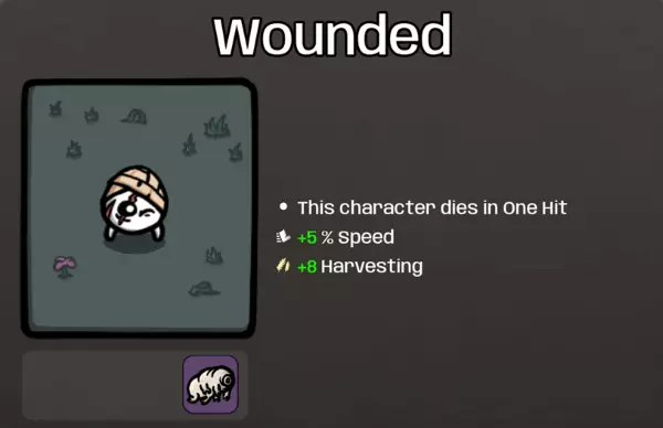 完成噩梦难度将解锁一个适合硬核玩家的角色:伤员。这个土豆拥有更高的收获和速度,但会被一击秒杀!不过你会初始携带缓步动物,所以你有一次机会继续前进。 新增武器:轨道炮
