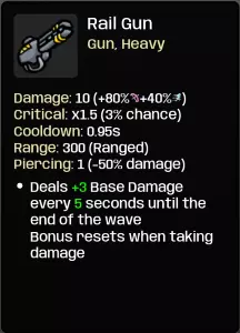 通过【受伤】角色(任意难度)获胜即可解锁【轨道炮】。正如使用【受伤】角色时要避免受伤一样,装备【轨道炮】时也需避免受伤。因为该武器在一波战斗中若未受到伤害,会变得越来越强。 平衡调整与小改进 平衡调整 本次更新旨在为游戏增加更多挑战。同时,我们借此机会对一些旧武器进行了平衡调整,主要是增强,这些武器值得更多关注。所有改动可在本帖末尾的更新日志中查看。 小改进