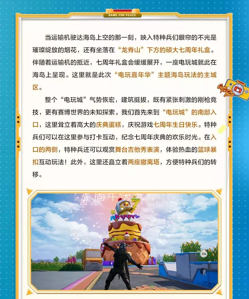 和平精英海岛7周年版本【电玩嘉年华】即将上线!全新电玩主题城区登场,像素与怀旧氛围感拉满!多款经典游戏创新回归,一站重温欢乐时光。快约上朋友组队打卡互动,4月1…