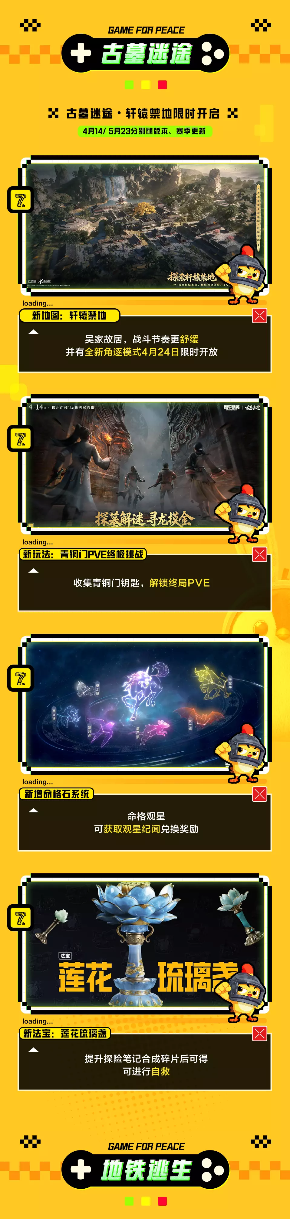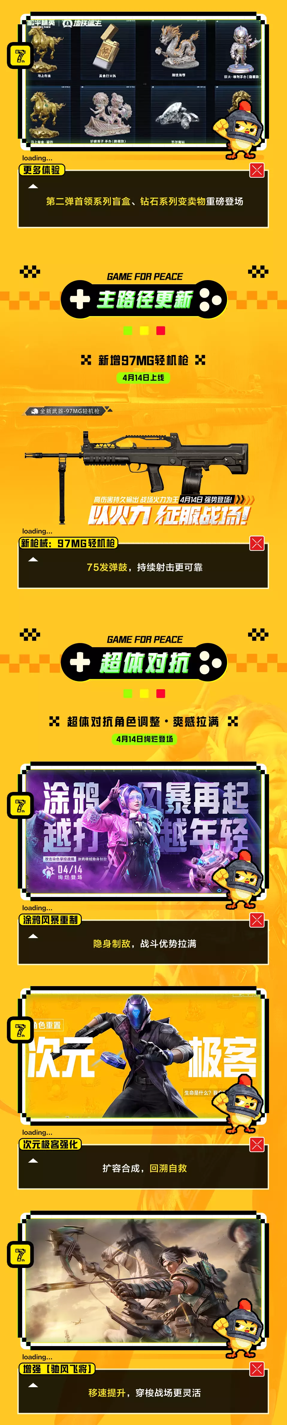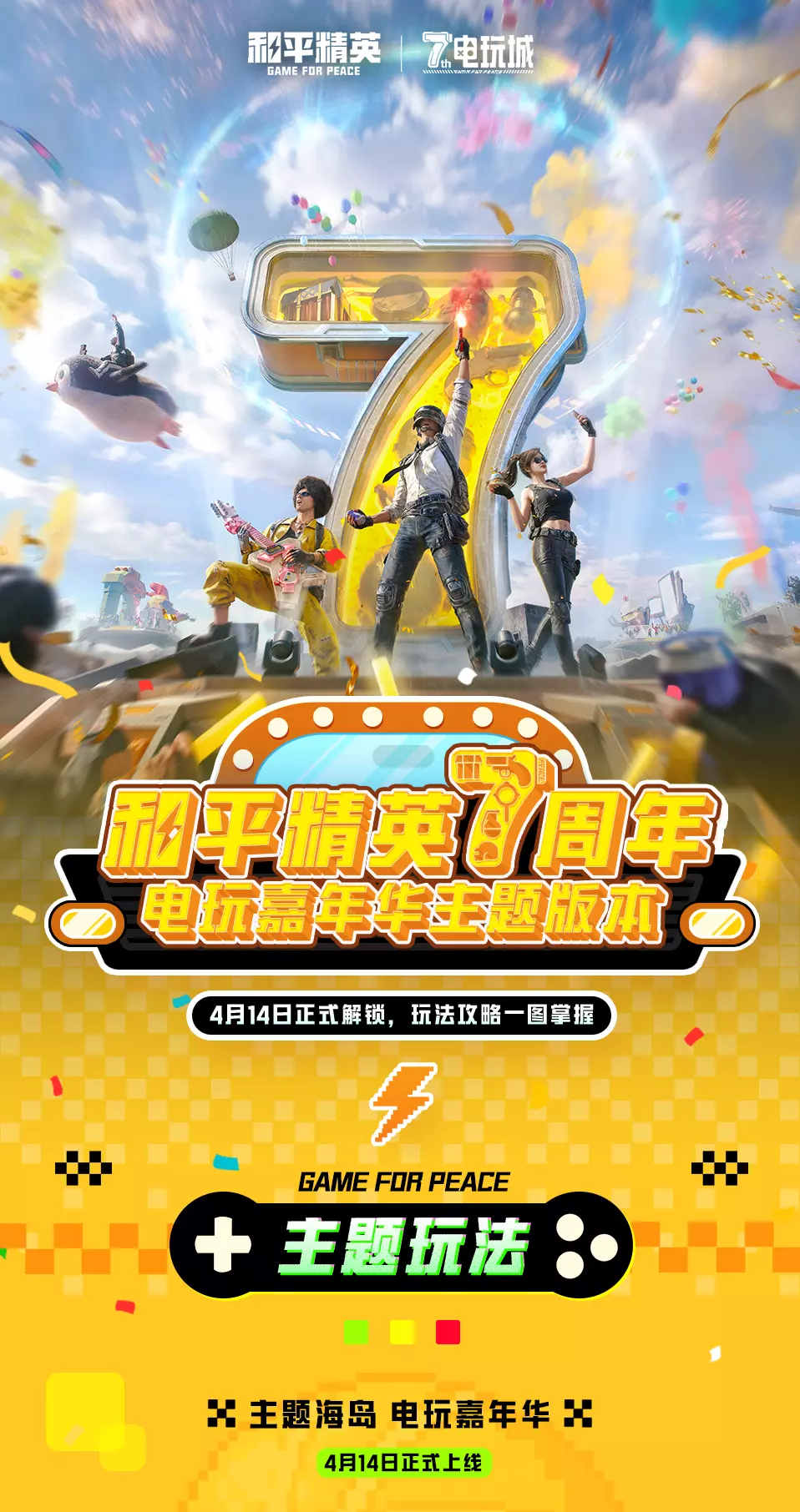 和平精英7周年电玩嘉年华主题版本4月14日上线,带来电玩城主题玩法、古墓迷途新内容、地铁逃生更新、97MG轻机枪、超体对抗调整等丰富内容,还有7周年专属福利可领取。