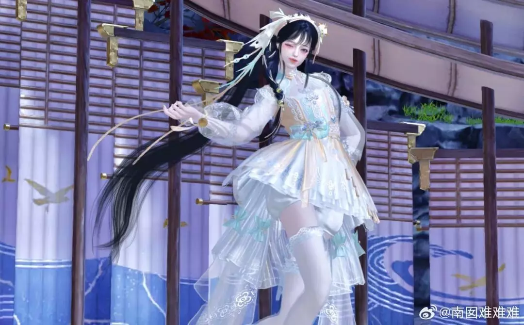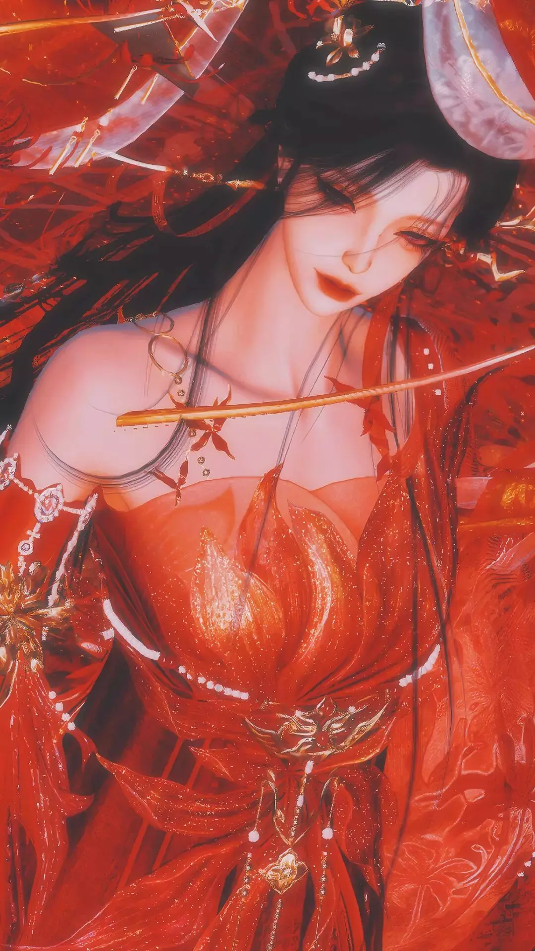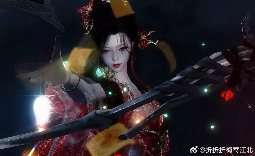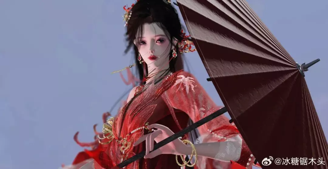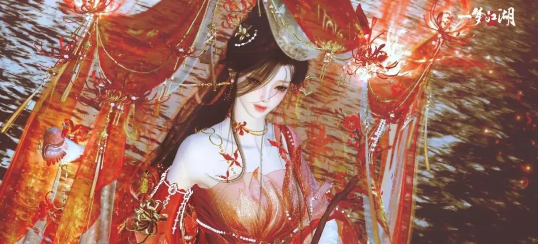 时装·情诉幽魂以赤红为主调,像把盛放的彼岸花穿在了身上。轻纱层层铺开,裙摆随动作曳出流光,腰挂·照骨观身动作的纸伞、花影、飘带色彩彼此呼应,更有故事感,仿佛一转身,就能惊起满地花火。