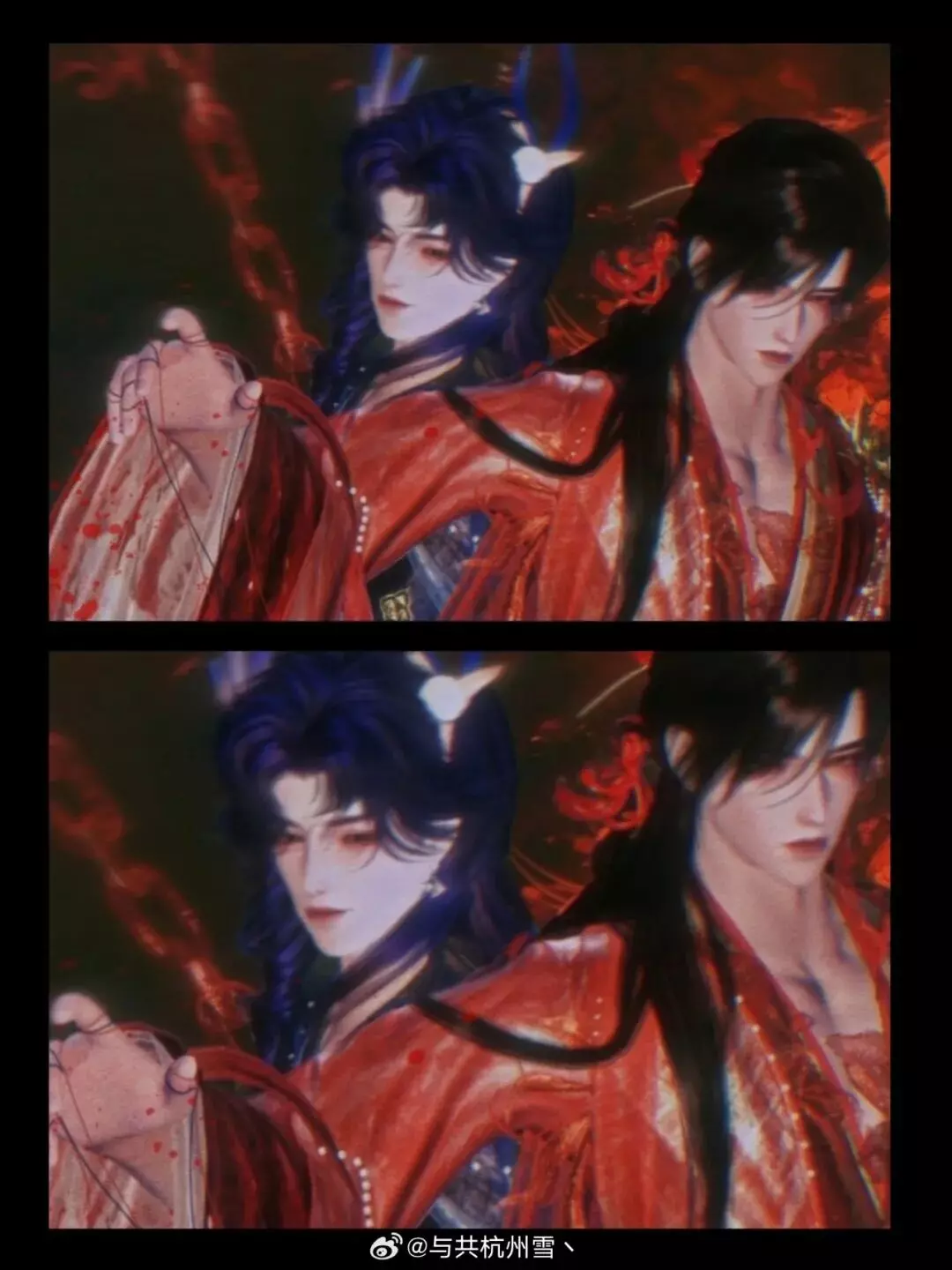 超绝冷暖色对比图来啦!冷色调清冽疏离,像月色落在寒夜里;暖色调则更浓郁张扬,像火焰在暗处缓缓燃起。两套衣装虽然风格并不相同,却因为这种强烈的颜色反差,让画面一下子有了宿命感与故事性!