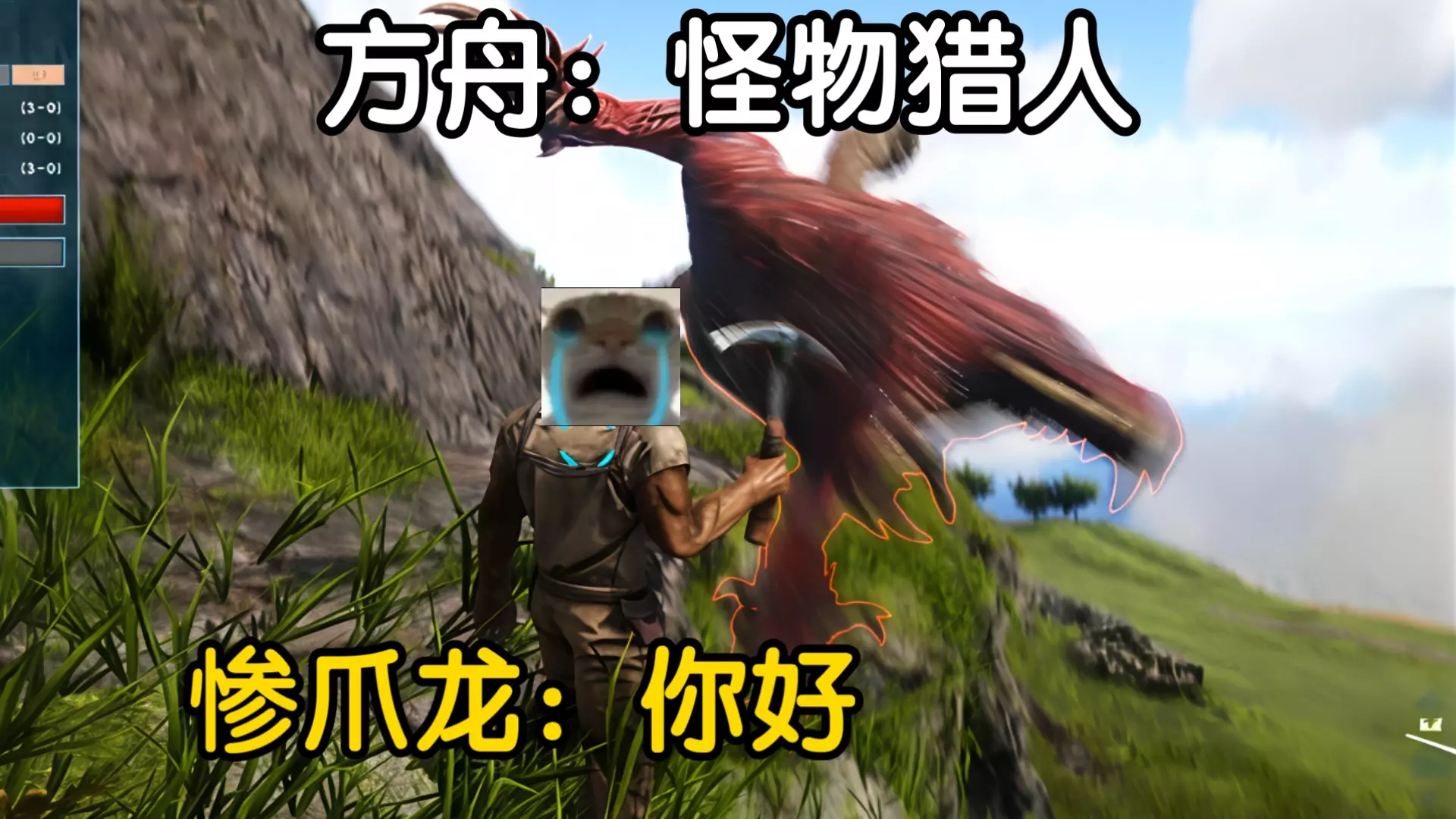 这是《方舟:怪物猎人》的游戏内容分享,玩家在游戏里先是海上漂流,之后在场景中遇到恐暴龙等怪物,过程中多次落败,调侃这款游戏哪里是怪物猎人,明明是怪物虐人。