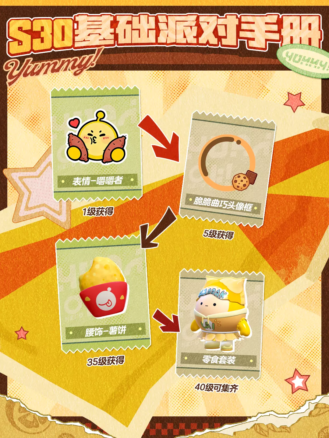 蛋仔派对S30元气零食季将于4月17日开启,带来爆米花伯克、盖浇饭等萌趣外观,还有麻辣土豆片等配饰、吃货舞等动作,同时派对季盲盒、派对手册奖励、蛋位任务等全面焕新,开启零食主题狂欢。