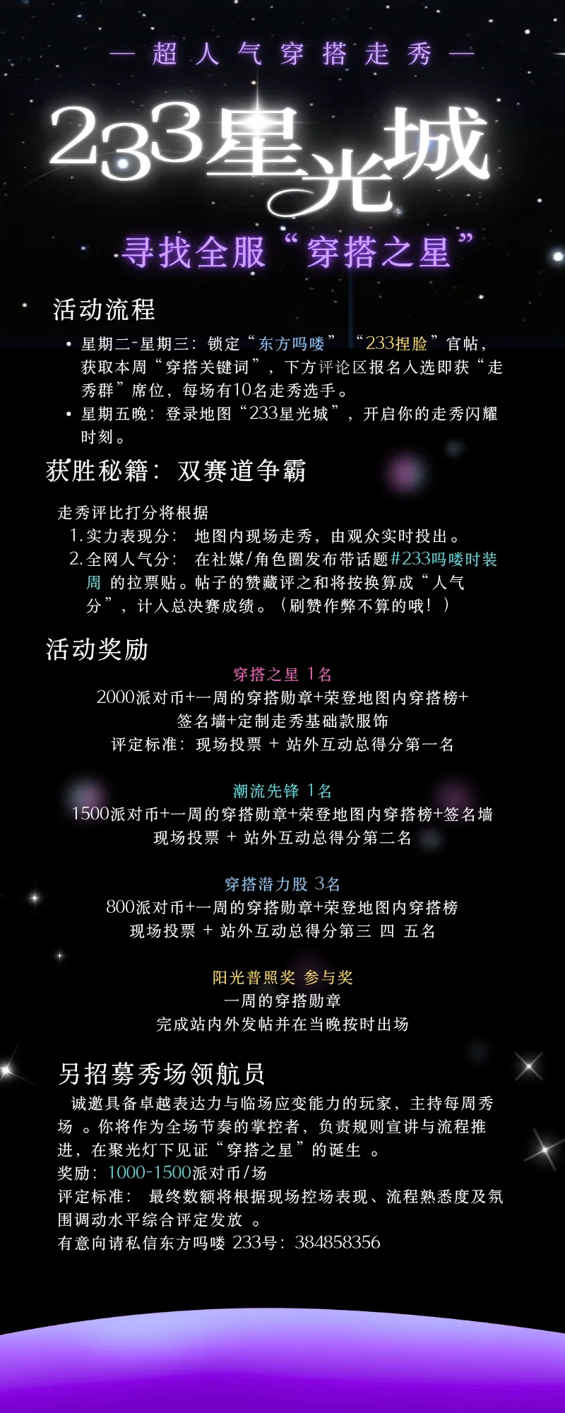 ✨吗喽带着新地图和大家见面啦!这一次,我化身走秀大赛主理人,不仅准备了顶配秀场“233星光城”,还准备了足够的派对币、专属勋章和服饰!