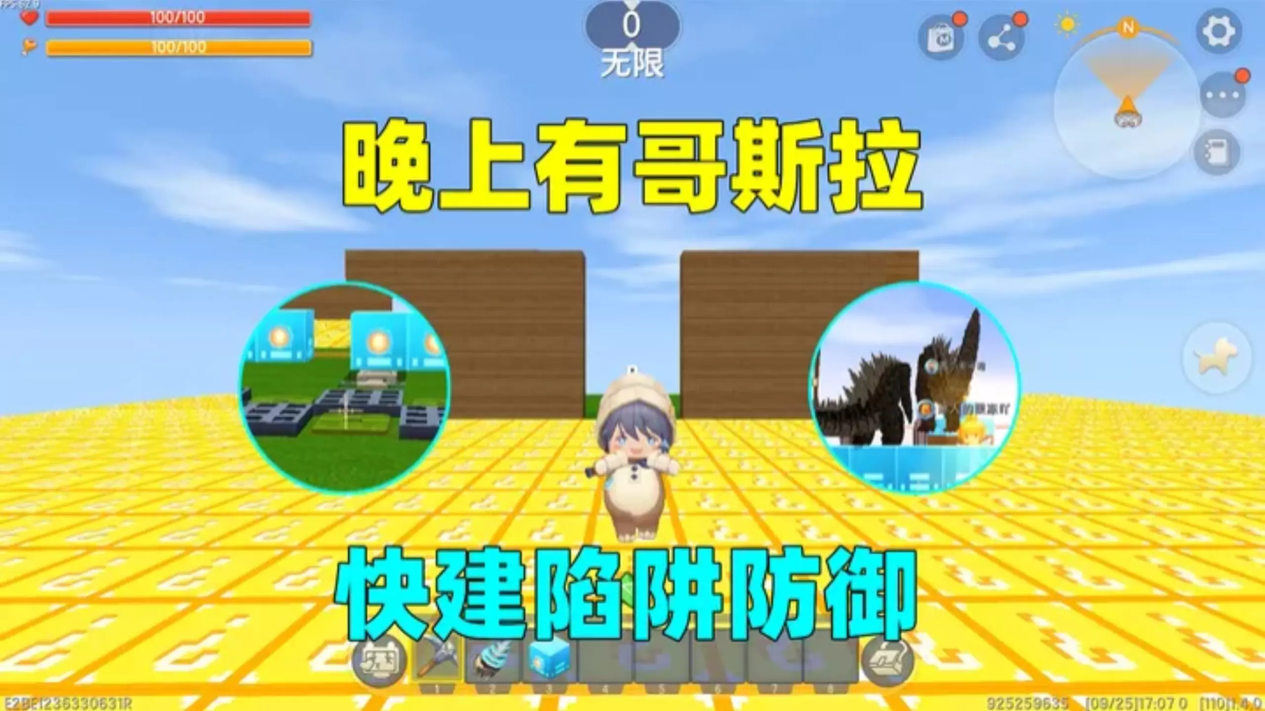 迷你世界:晚上有哥斯拉!房主哭有神器,汉堡建激光地刺陷阱防御