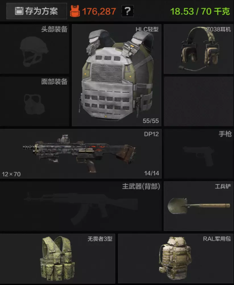 胸挂和背包可以选择尽可能大的,也可以选择已有的来降低入场成本,甚至可以选择套包来扩大自己的背包容量。但是千万要小心那些诡异怪物,老皮我选择用一把DP12防身,便宜、火力充足、子弹也不占空间,能够轻松应对诡异怪物。还要记得携带齐备医疗物资,这些可都是危机关头救命的家伙。