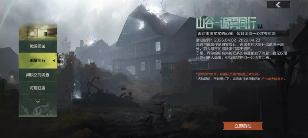 注意!诡雾同行模式与产出提升活动持续到4月23日,想要无压力爽摸的先锋们记得抓住机会!