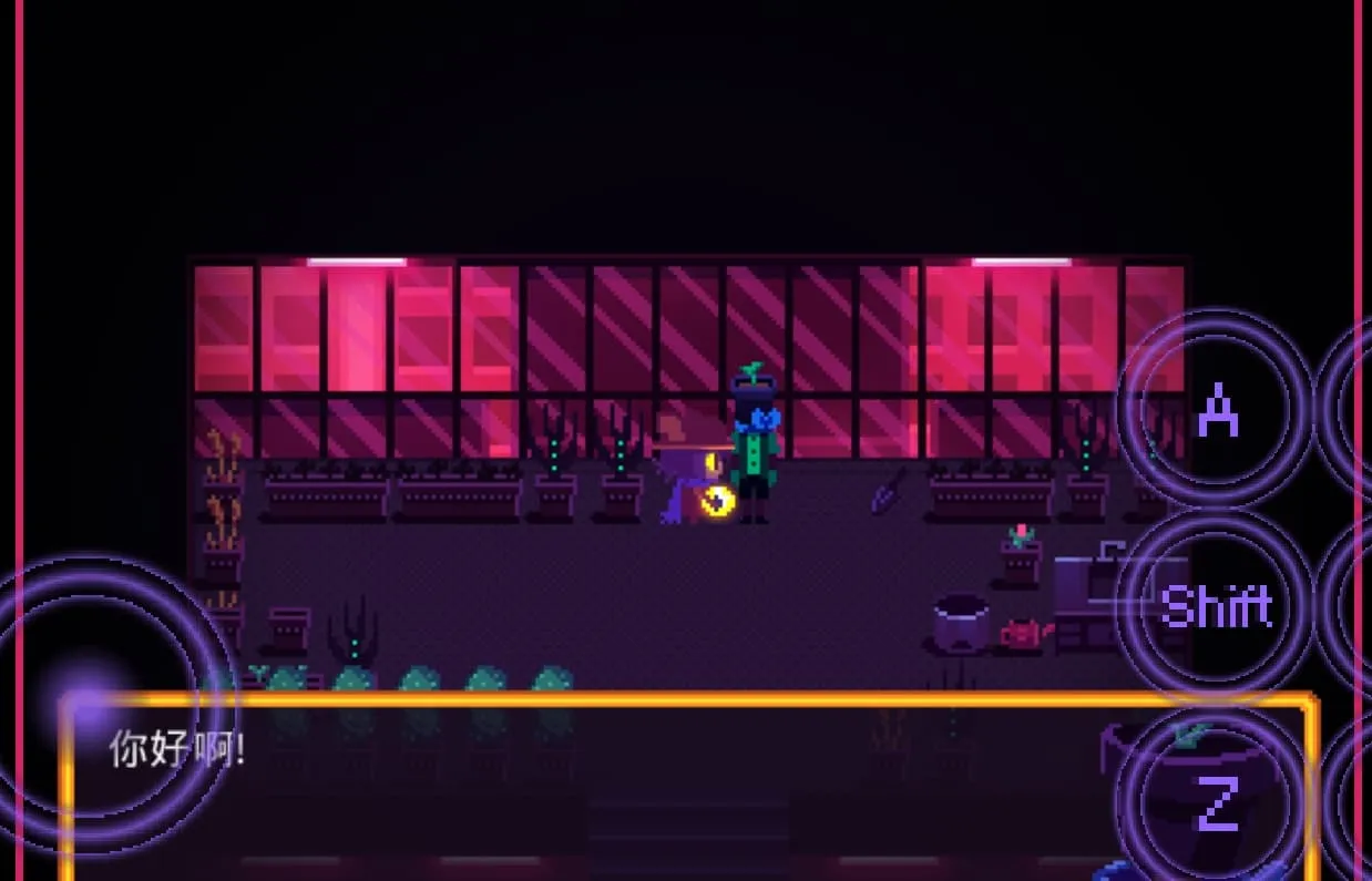 1.来到城市高空,先选中物品栏的【种子】,然后往左走与大机器人对话
