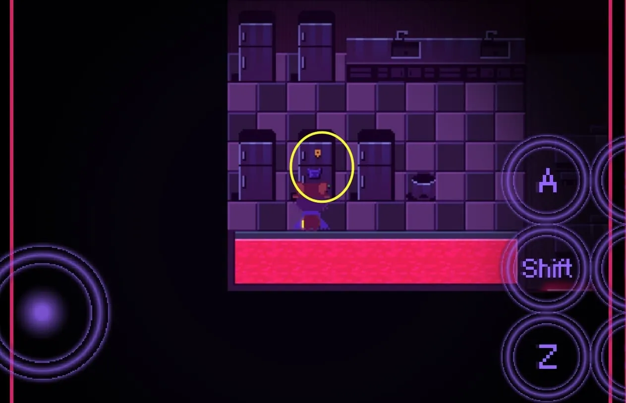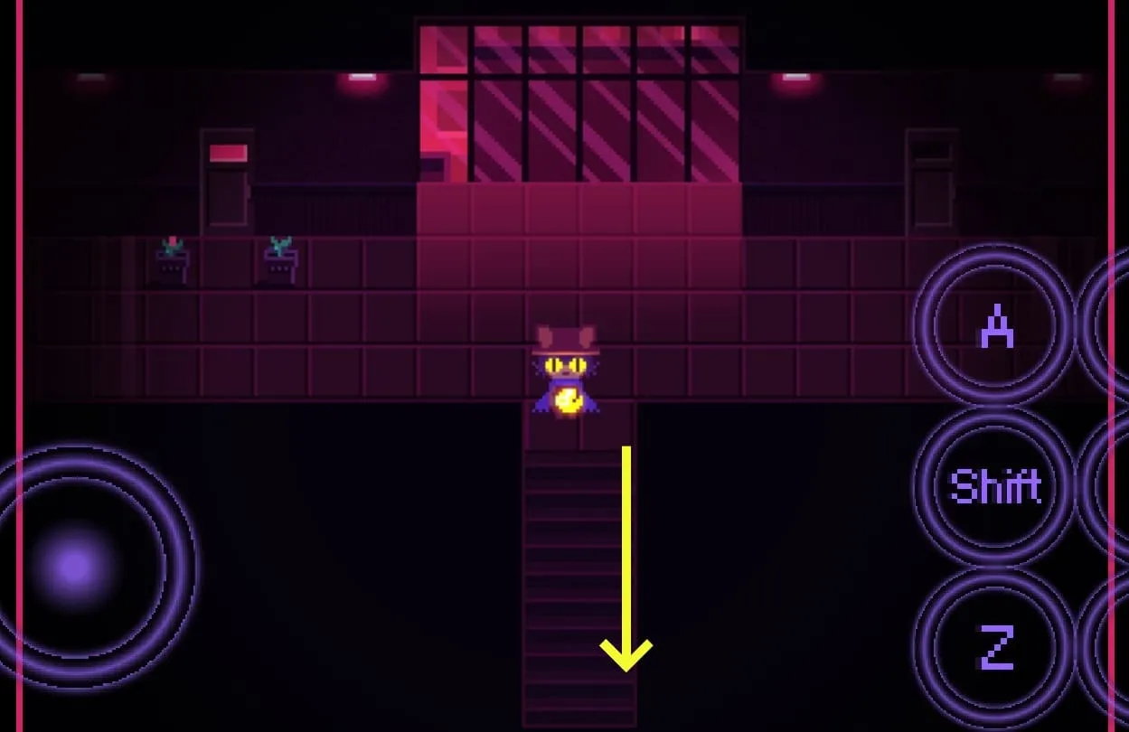 9.往左侧一直走,进入建筑物内后,再往左侧走到第二个走廊处,在第二个走廊处有一个往下的道路,往下走就能进入浴室