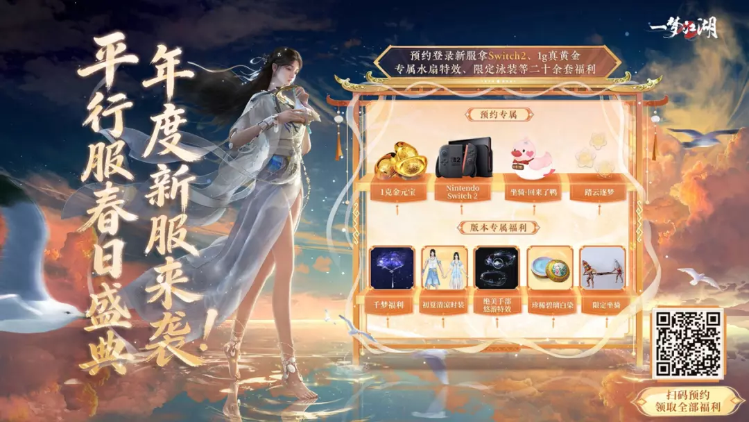 现在扫码预约,更有机会赢取专属好礼,Switch2、1g 纯金、典藏版设定集、云锦礼券等多重等惊喜大奖等你来赢~,万元福利倾情派送!