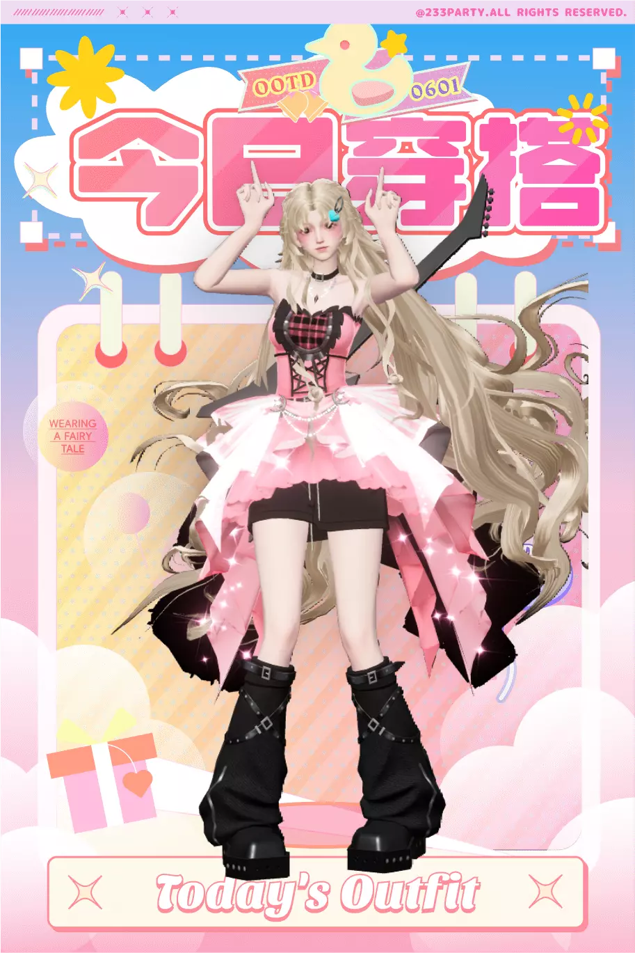这是一组233派对的虚拟穿搭分享,分享233最靓虚拟崽崽的甜酷风今日穿搭,展示粉黑拼接甜辣造型,分享好看的今日份OOTD。