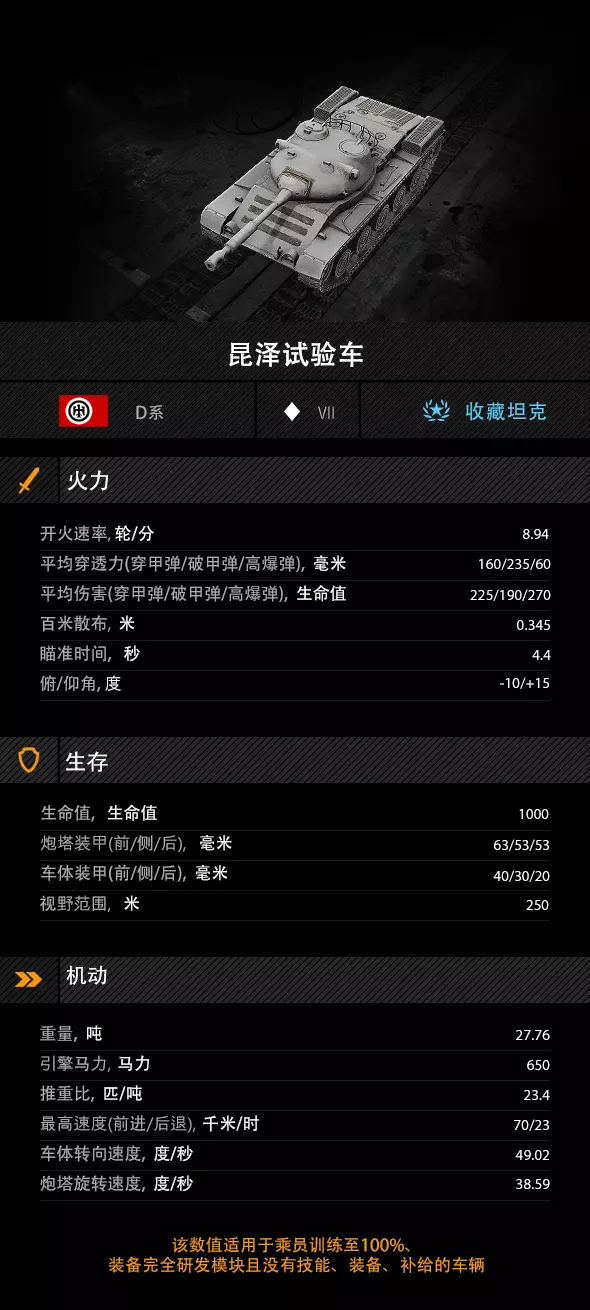 该车拥有70千米/时的前进极速与38千米/时的倒车极速,配合23.4马力/吨的推重比,机动性能极为出色,能够快速抵达战场各个关键位置。优秀的车体转向速度使其可以迅速调整站位,从容应对战场变化。此外,其携带的移动隐蔽机制让昆泽试验车在高速移动时依然保持良好的隐蔽性,不易被敌方发现。
