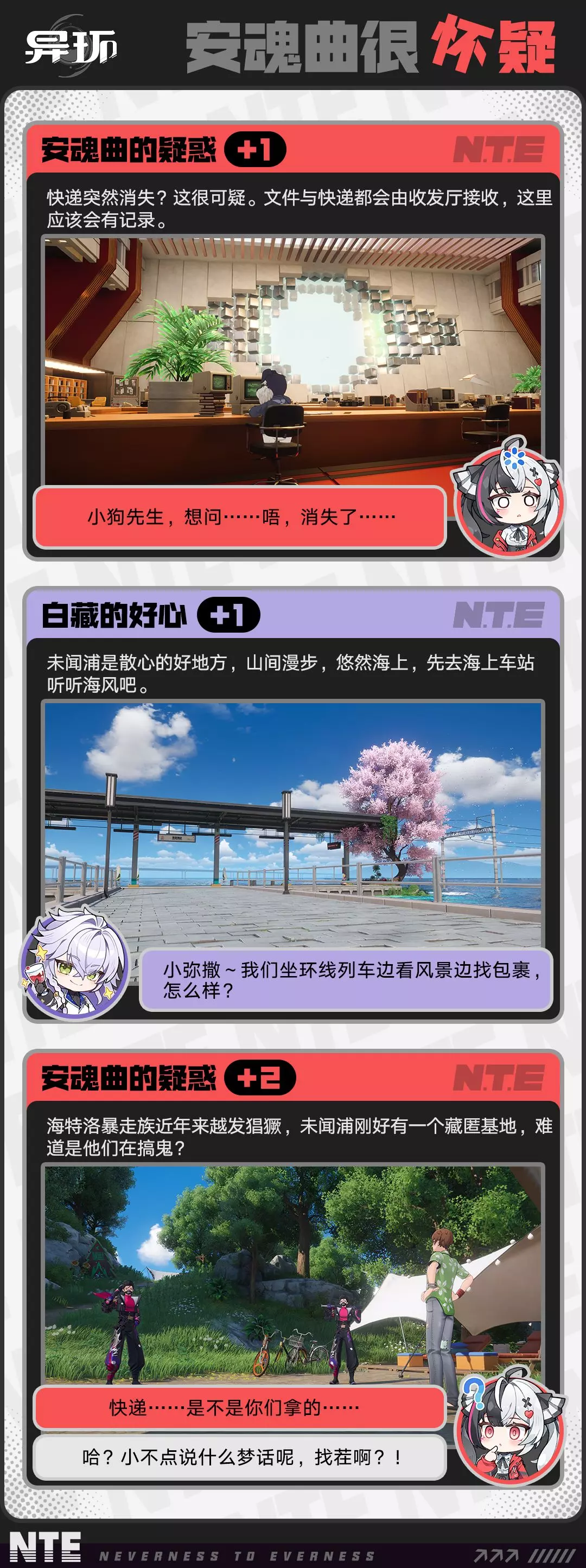 近期管理局的快递总是莫名消失,散落在「未闻浦」各处,安魂曲的番茄酱包裹疑似也在其中。