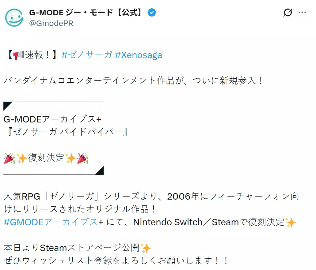 万代南梦宫的《异度传说》系列将以全新形式回归,G-MODE已宣布将对衍生作品《异度传说:魔笛手》(Xenosaga The Pied Piper)进行复刻,登陆现代平台。 这一消息通过G-MODE的官方社交媒体账号公布,确认该作将以"G-MODE Archives Plus"的标签,登陆任天堂Switch和Steam平台。游戏最初于2006年在日本功能手机上推出,此次将是它首次在现代硬件上亮相。