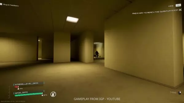 这是恐怖游戏《Backrooms: Extractions》的视频介绍,展示了游戏内昏暗压抑的场景,玩家需完成收集软盘、突破安保、前往量子房间等任务,还有压力值、血氧值等状态设定,充满惊悚氛围。