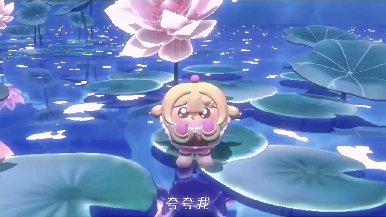这是一则蛋仔派对的卡点创作投稿,以“我在等一个爱我的人”为主题,展示了蛋仔在荷塘、草地、河畔秋千等场景的可爱画面,搭配“夸夸我”“陪陪我”等文案,风格治愈可爱。