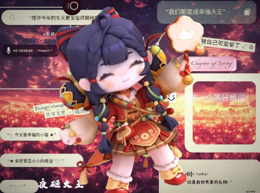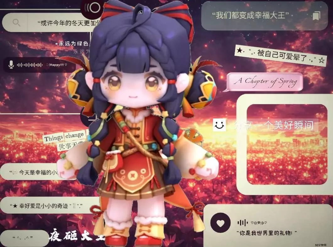 这是一篇迷你世界社区的分享帖,展示了游戏里可爱的国风装扮角色,搭配浪漫的文案,传递出温馨治愈的氛围,分享美好瞬间。