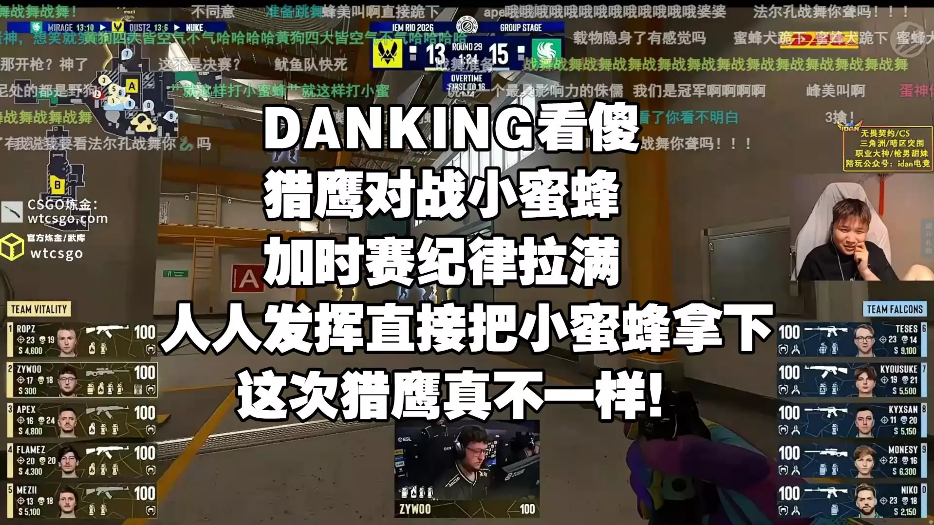 在IEM RIO 2026小组赛中,选手重神(HEAVYGOD)凭借逆天压枪完成1V3拿下残局,这一精彩操作让apEX忍不住做出反应,场面极具看点。