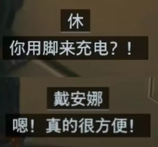 戴安娜原画 游戏未发售前,就有玩家疑惑为什么"小女孩"【戴安娜】为什么不穿鞋,光着脚? 而在游戏中,主角【休】也有这个疑惑,他会问【戴安娜】为什么不穿鞋? 【戴安娜】的回答(官方解释/设定)是: "摇篮基地的地下有能量存储器,我光着脚才能充电!" 真正的用脚充电...(机器人,很合理) 即使在户外,戴安娜的电池也能用很久。