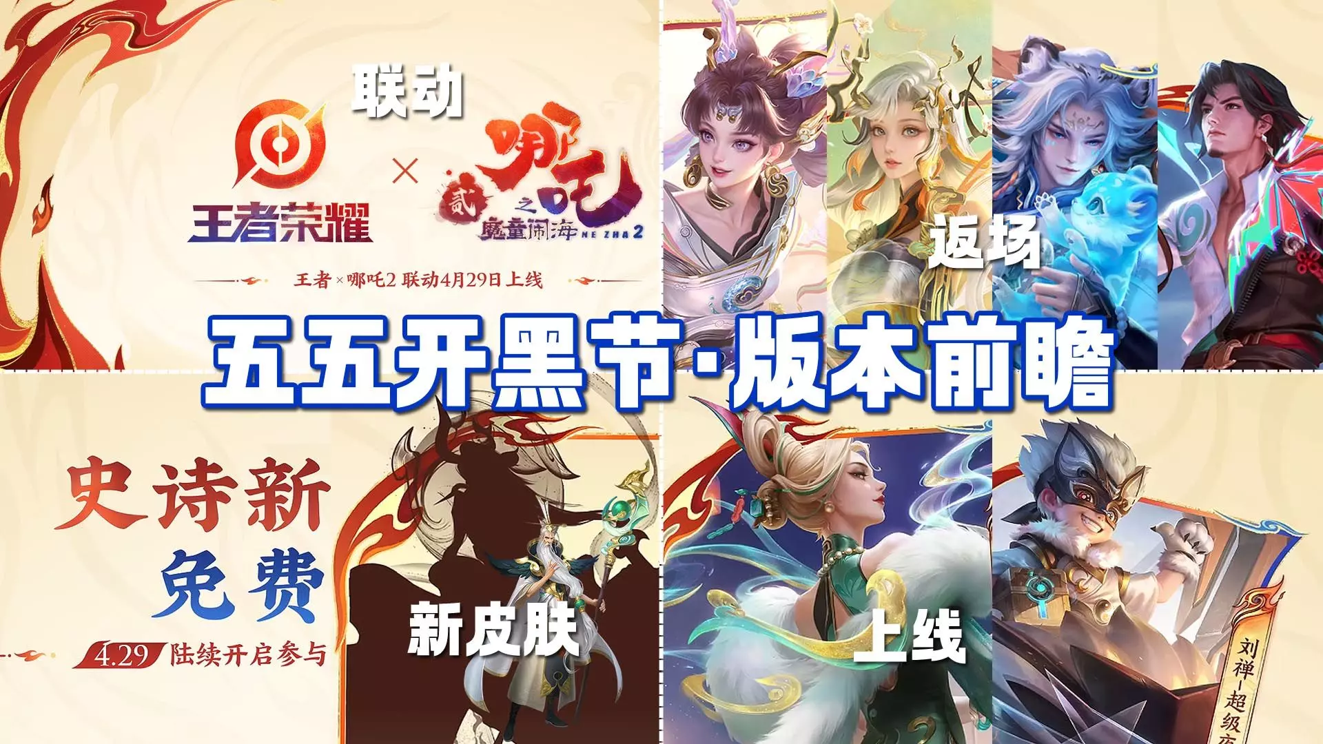 新皮肤 【5月王者活动福利一览!】策划太让人惊喜了 哪吒联动上线免费送史诗皮肤!