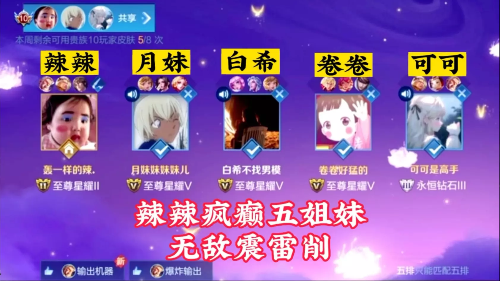 王者荣耀五五开黑节 辣辣疯癫五姐妹之无敌震雷削,场面一度混乱!