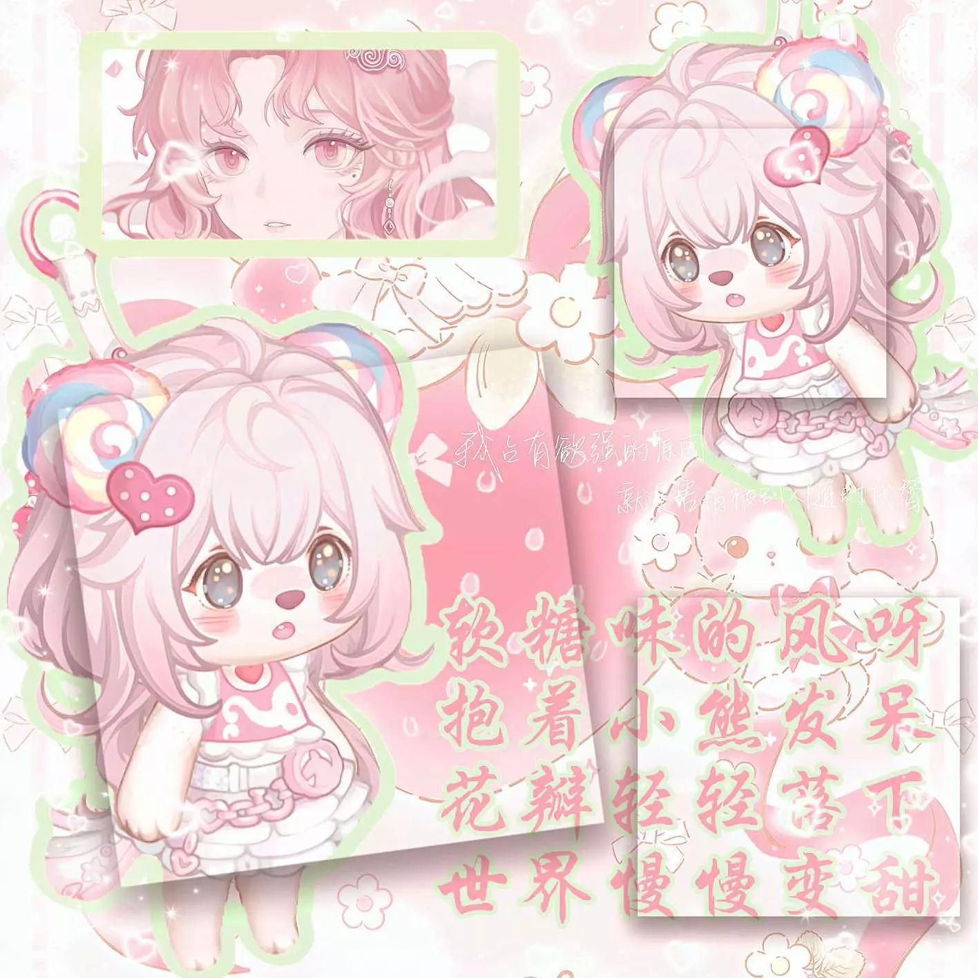 这是一篇奥比岛社区图文帖,分享了粉白甜梦风格的奥比岛穿搭美图,打造出软糖味的可爱小奥比形象,画风甜美粉嫩,还搭配了同风格的可爱背景图,尽显甜美氛围。