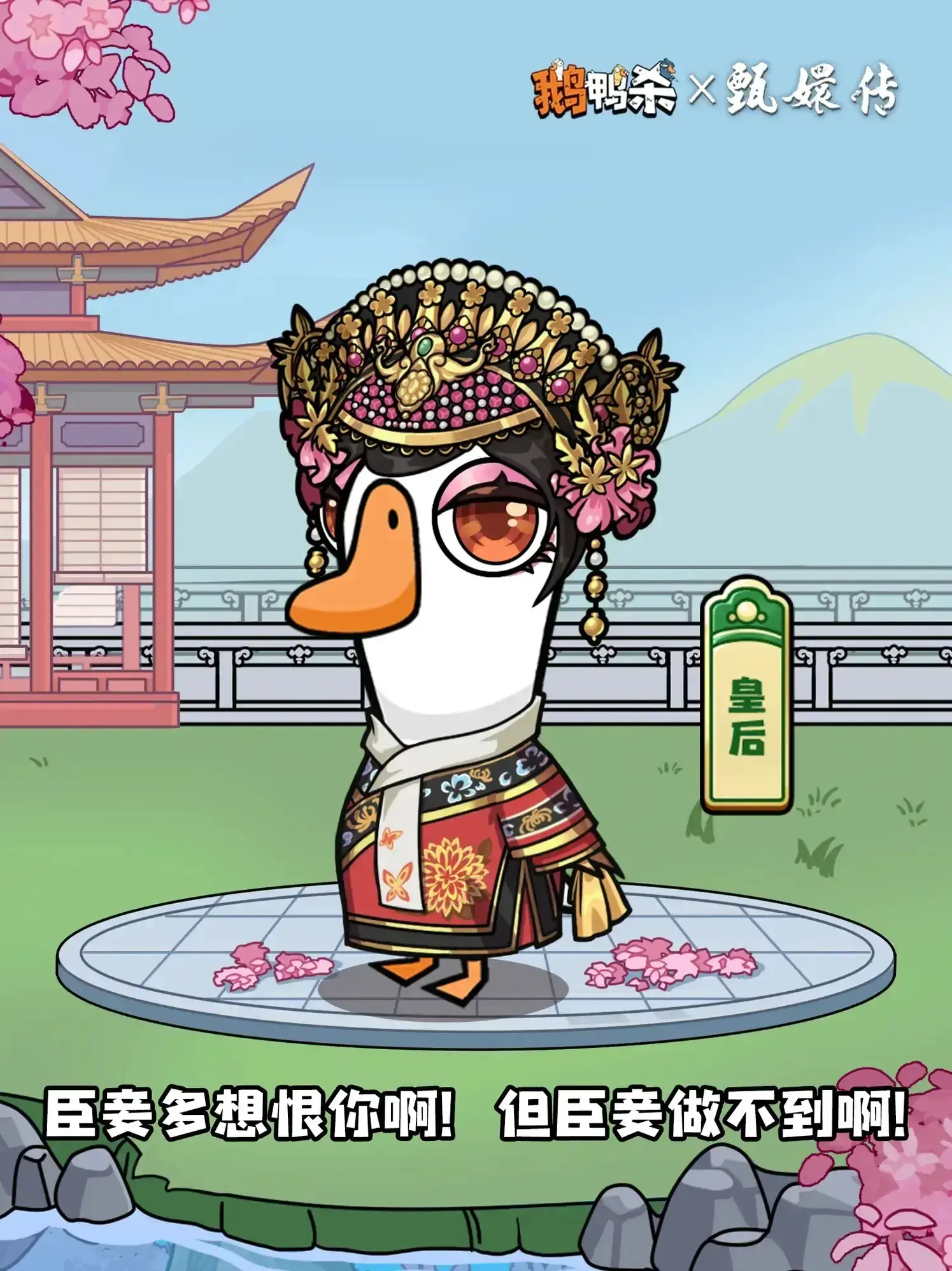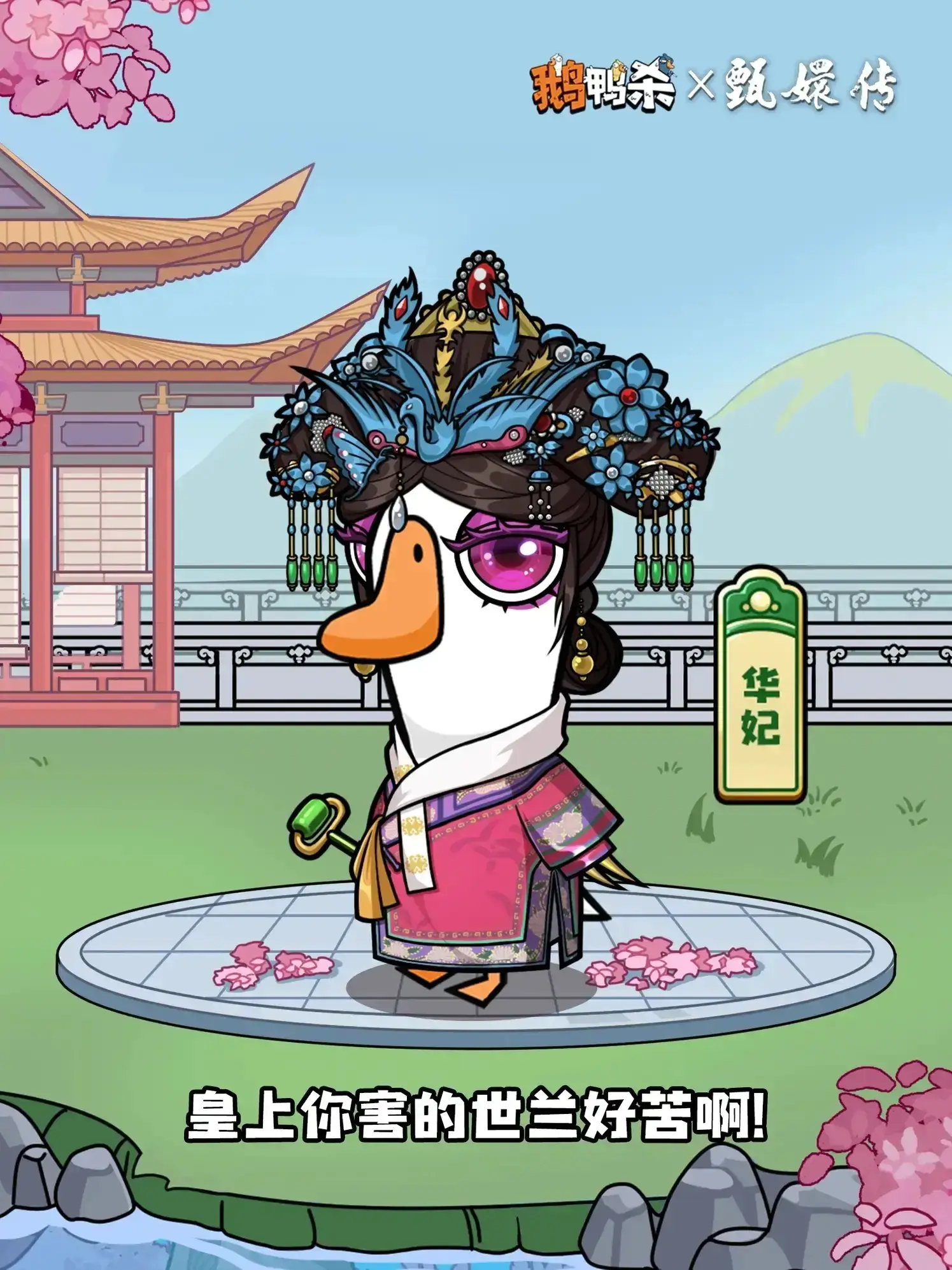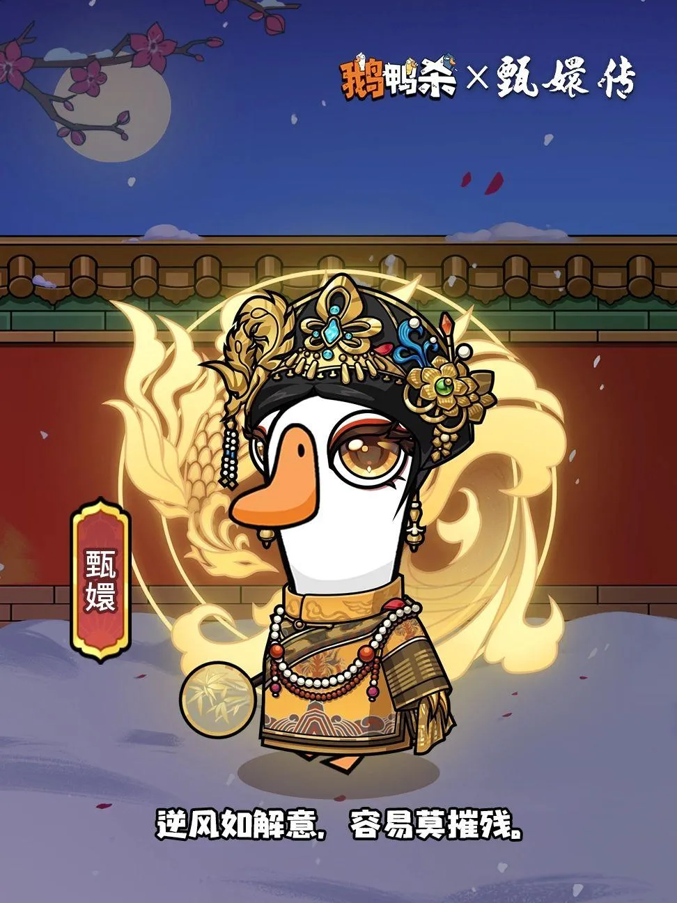 鹅鸭杀与甄嬛传联动推出「宫闱花影」外观,包含华妃、沈眉庄等角色主题外观,该外观可在4月23日8:00-5月15日期间,通过甄嬛传联动活动的史诗卡池获取,玩家可在鹅鸭杀中体验联动内容。