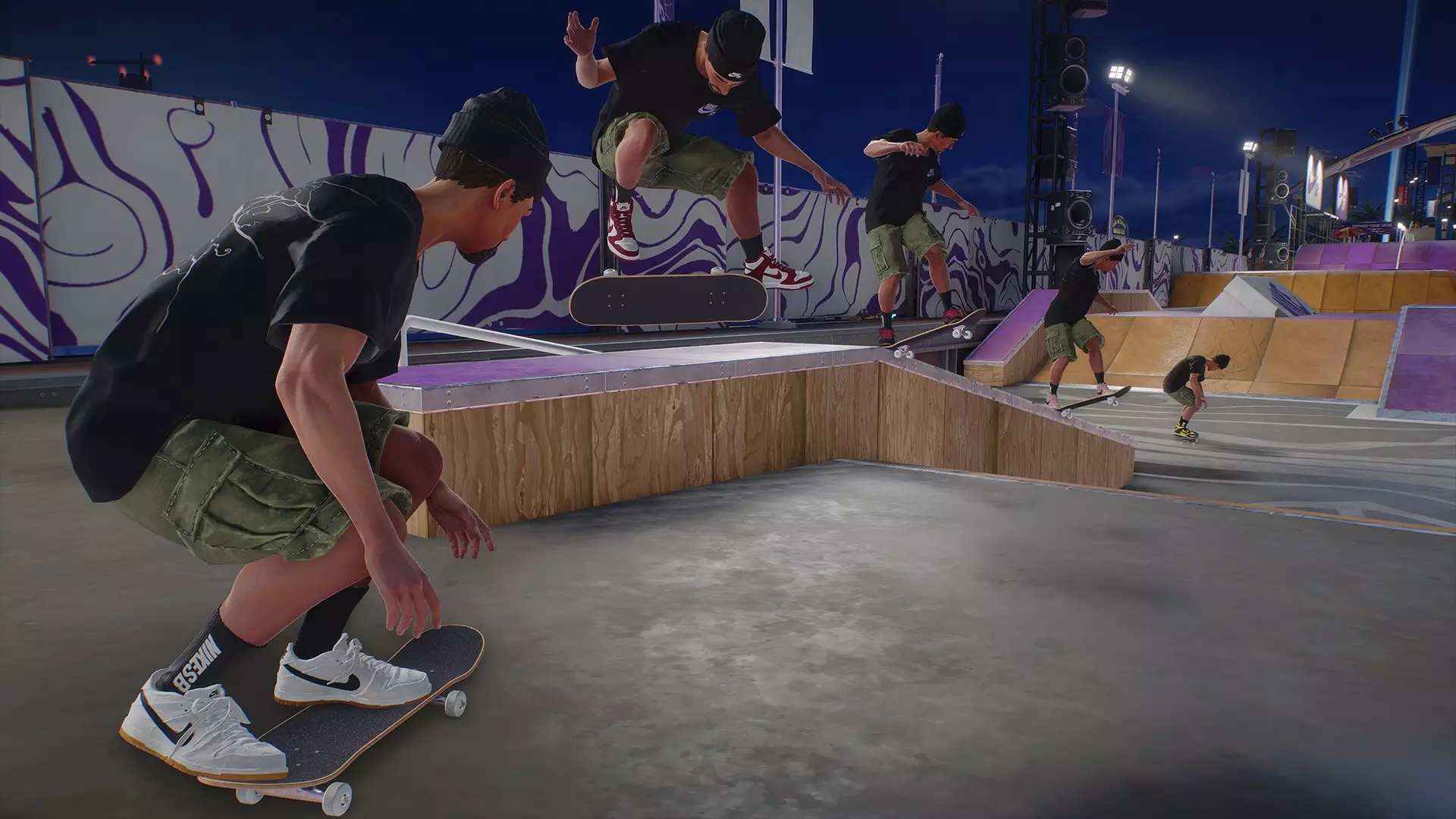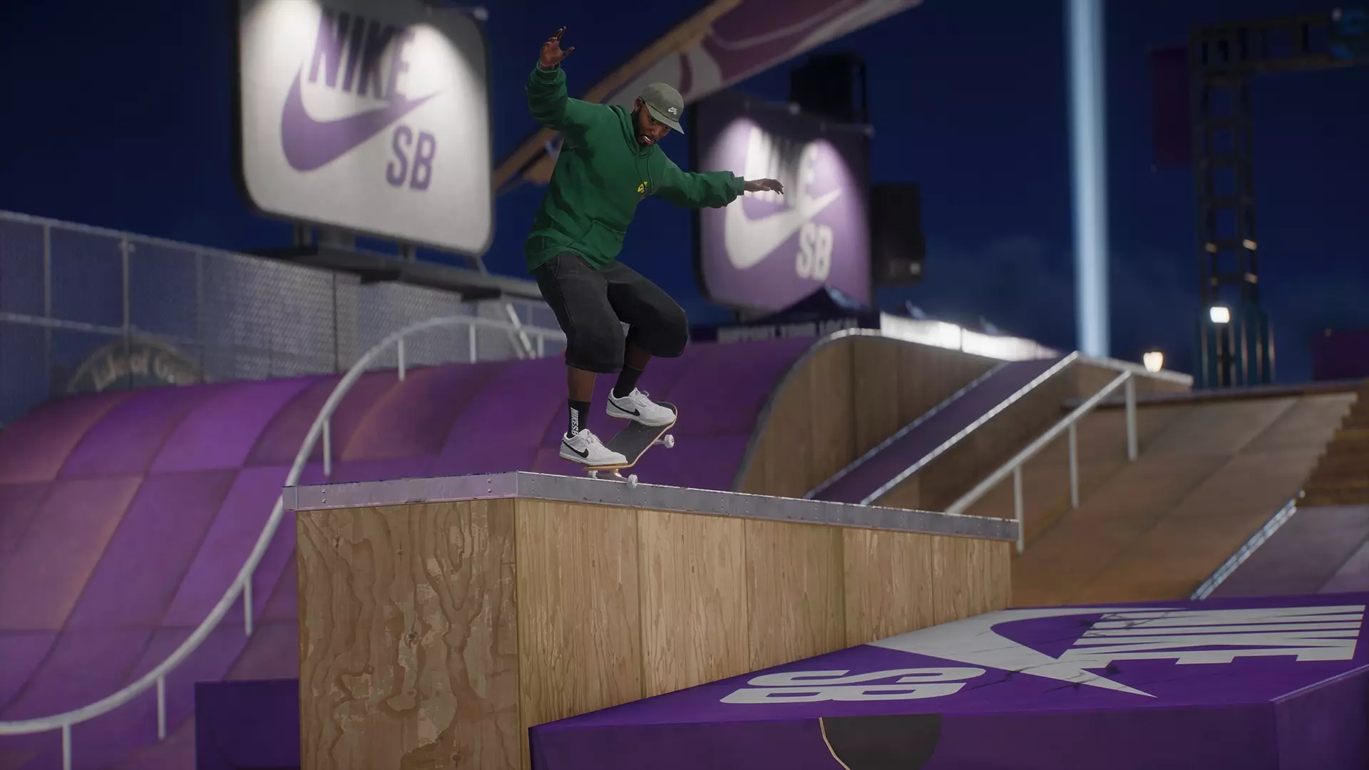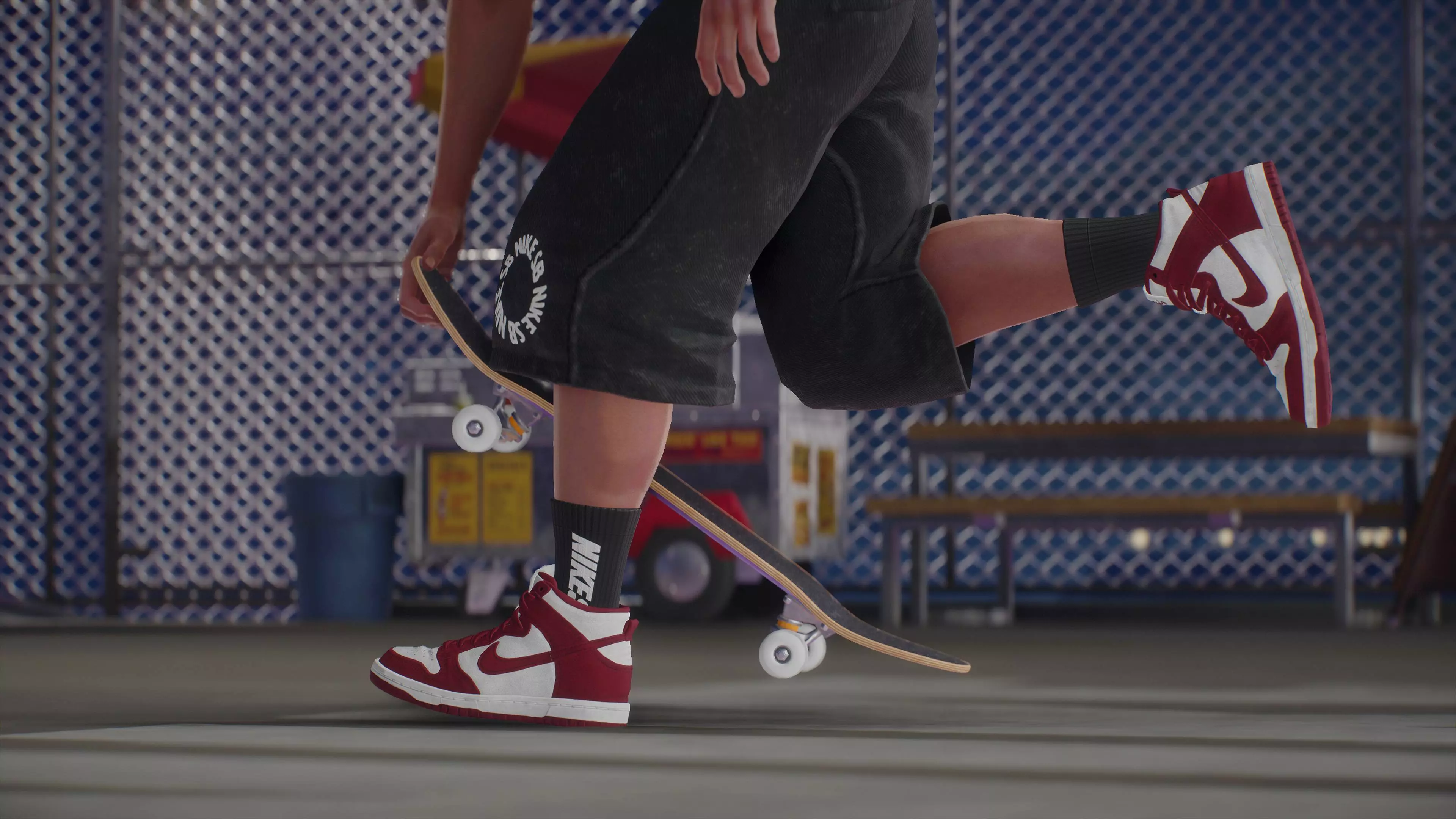 Nike SB 为玩家准备了一系列全新的任务和挑战。你将追逐诸如最高总分、在栏杆、台阶和 coping 上积累滑行距离,以及尝试完成一些精彩的三连动作组合等挑战。完成 Nike SB 任务可解锁一套装备:Nike SB Dunk Highs 滑板鞋、一双配套的黑色袜子,以及一个滑板贴纸。