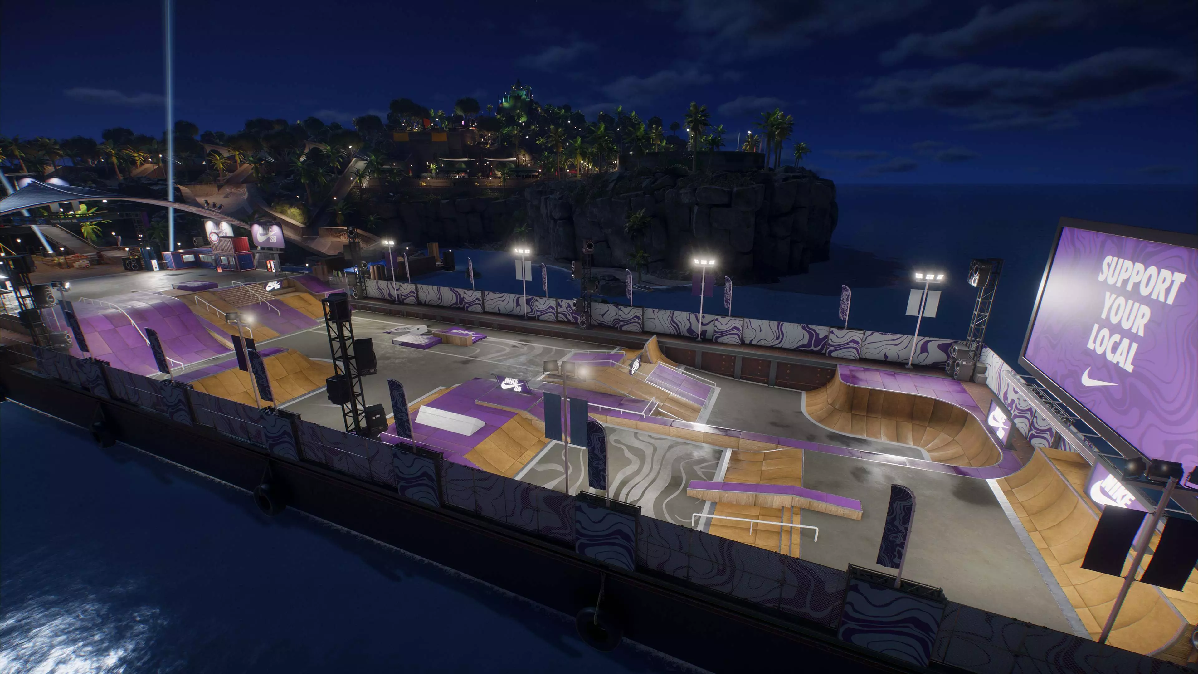 我们知道大家一直期待耐克SB能加入游戏,也听到了大家对夜间滑板的愿望,所以我们很高兴地宣布,耐克SB将在 grom 的驳船滑板公园惊喜登场,并且是在夜间。