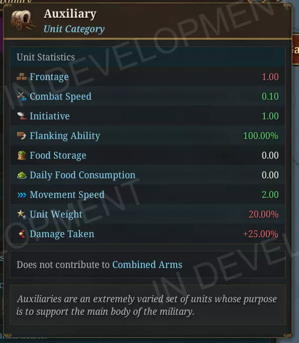 这难道不是更应该建造的理由吗? 后勤 军队现在的粮食消耗量是1.1版本时的十倍。这是一次有意的调整,旨在让军事粮食消耗与民用人口消耗处于同一数量级,从而使在敌国领土上的大规模军队对当地粮食供应造成切实的压力。