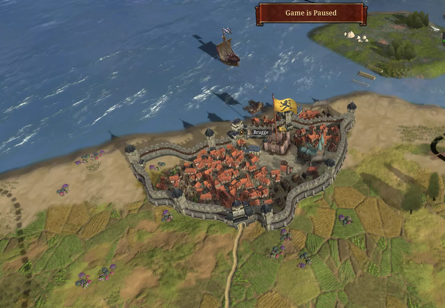 除了游戏机制外,城市城墙在地图上也有直观的呈现。有城墙的定居点会在城市图形周围以实体环形展示其防御工事。有城墙地点的提示框会清晰地显示这一区别,它不会只显示普通的要塞等级,而是会告诉你该地点拥有城市城墙且适用最低要塞等级,因此你总能知道看到的是石砌建筑还是正规的军事工事。城墙还会阻挡来自陆地和海上的视线,减缓军队移动速度(因为攻击者需要绕着城墙外围行进),降低当地叛乱度,并将少量领地权力从王室转移给市民阶层。它们造价高昂且需要数年时间建造,但对于没有自己堡垒的繁荣贸易城市而言,它们往往是迅速投降与代价高昂的围城之间的关键区别。