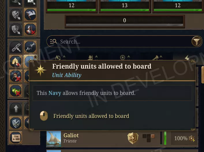 是啊,得弄些马车,不然穿越撒哈拉沙漠的行军可就凶多吉少了…… 将领对后勤范围的影响已减半,所以出色的军需官依然重要,但不再能凭一己之力完全无视中世纪补给的限制。 食物消耗现在按日增量追踪和报告,而非按月,让你能更清晰地了解在局势恶化前,一场战役消耗储备的速度有多快。 修复了一个漏洞,即当沿海军队已处于饥饿状态时,AI的【执行海军后勤】目标不会激活,现在当最近的军队粮草耗尽时,舰队会正确优先进行补给航行。《欧陆风云5》更新内容 1. 修复了海军补给线计算位置落后舰队实际位置一格的问题,该问题曾导致舰队无法从当前所在格获取补给;此问题现已修复。 2. 解决了军队即使驻扎在有补给站的地点仍会挨饿的长期问题,现在补给站会正确地作为静止部队的补给来源。 3. 后勤距离提示框现在会按名称和距离列出最近的补给来源,让你能一眼看出你的军队距离安全补给点是一个省份之遥,还是已深入荒野三周。损耗寻路机制现在会根据每个地格的移动时间成本来调整其损耗惩罚,因此在缓慢地形、山脉、沼泽、茂密森林等区域溃逃的军队将付出更高的损耗代价,这反映了在这些路线上为军队提供补给的实际难度。 盟军部队运输: 你现在可以切换舰队状态,允许友好国家将其军队装载到你的船只上,实现真正的盟军海军协同。当启用时,该切换选项会出现在你所拥有的任何海军的单位行动栏中,战争盟友和你势力范围内的国家(如附庸国)可以使用你的舰队作为运输工具。默认情况下,舰队设置为不允许友军登船,因此你可以完全控制谁有权使用你的船只。战争盟友的军队只有在舰队所有者开启此权限,且装载军队的国家是战争盟友或属于所有者的附庸体系时,才能登船。该权限按舰队单独设置,可随时更改,只需再次点击切换按钮即可撤销访问权限,阻止进一步装载。