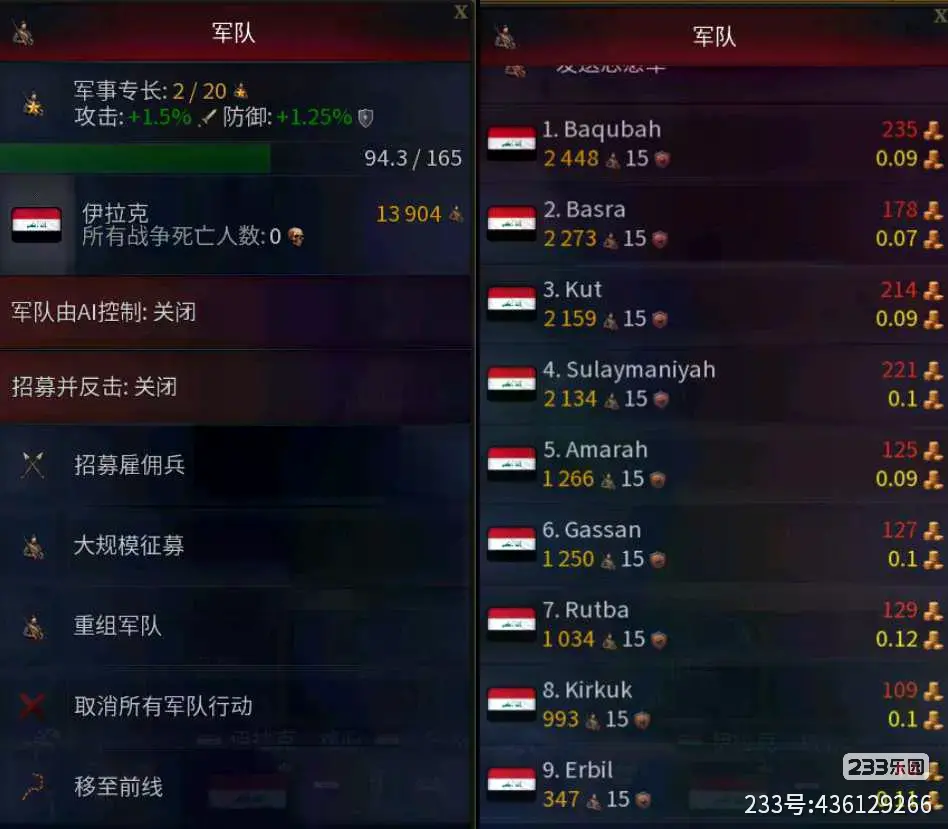上图的右侧就能看见各地区军队所需的费用