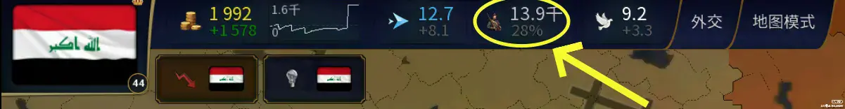 而下图的军队地图模式就是查看什么地区有军队