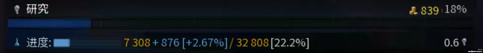 每次研究进度满了后除了能提升科技等级,还能获得1点科技点,而科技点则是用于属性的提升,如下图: