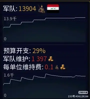 在游戏中点击左上角的国旗就能看见此界面,而需要关注的是此界面左侧的开支表(即下图);至于右侧就是一些全球国家的大概数据,这里不多说
