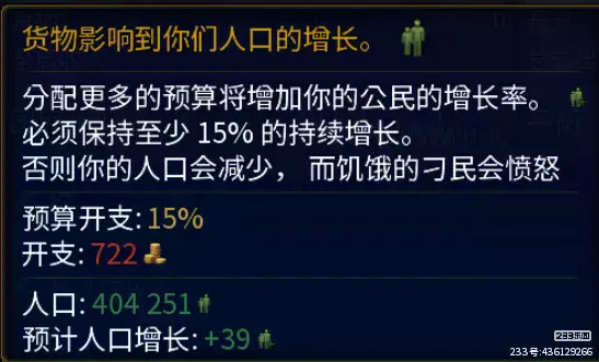 商品会影响人口的增速,人口的基数又会影响军队征集的数量,同时商品过少的话还会引起民众的不满,导致叛乱出现,一般来说也是维持最低标准就行,触发需要大规模的增加人数才需要拉高对商品的支出
