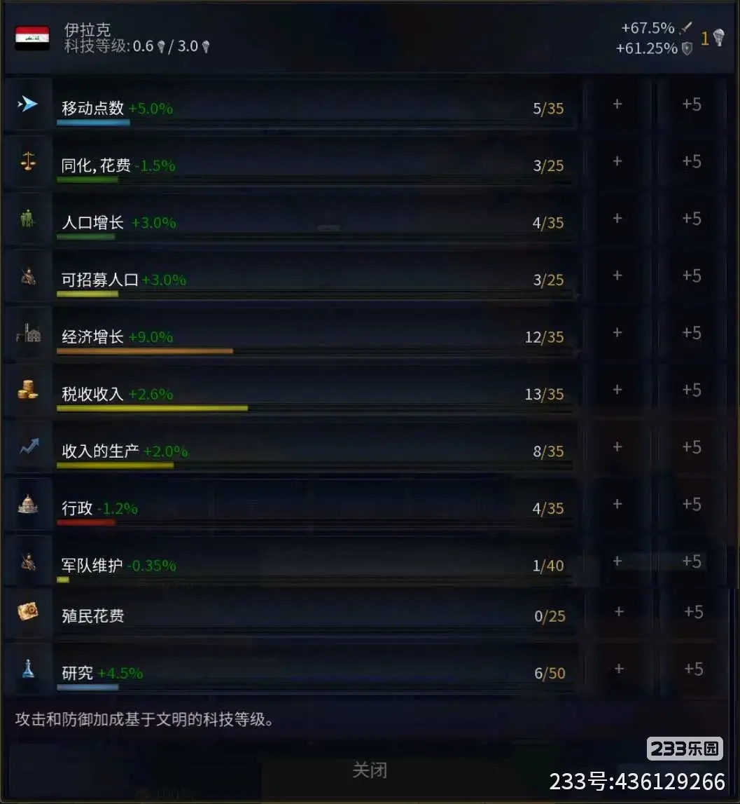 上图中的平均发展旁边有一个[37%科技点],这个意思就是当前的“平均发展”距离“科技等级”上限还有多远