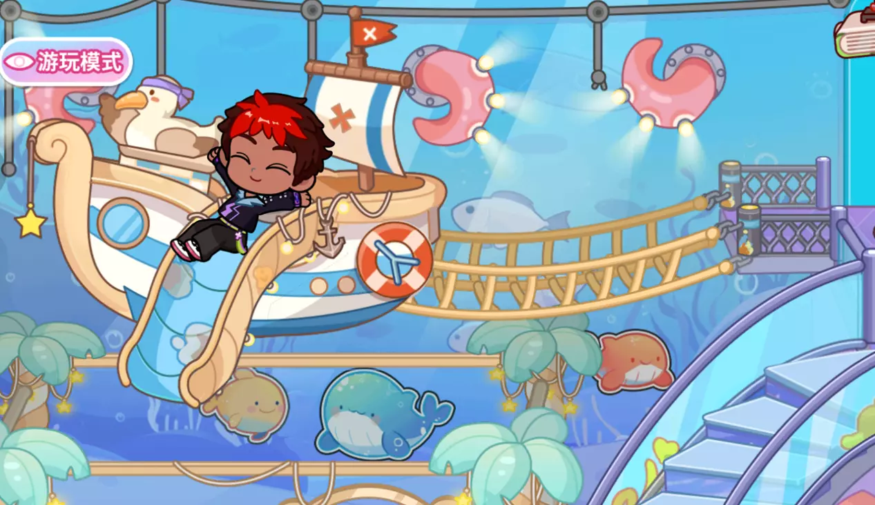 将角色拖到泡沫海洋区域,会自动进入泡沫池,并触发泡沫飞溅的特效。