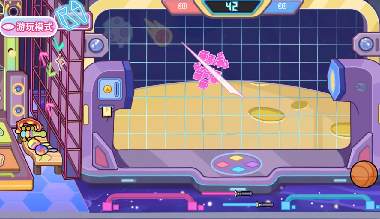 模拟红蓝方,对应颜色方块弹出时,及时切除可以得分。